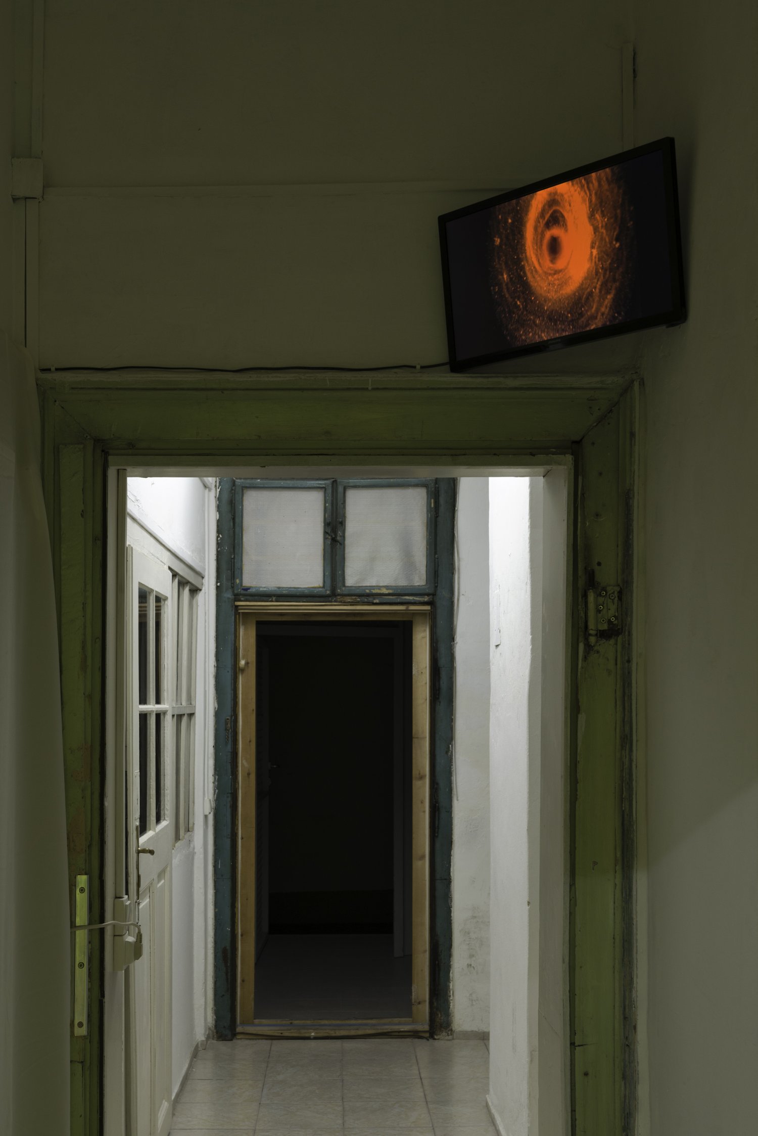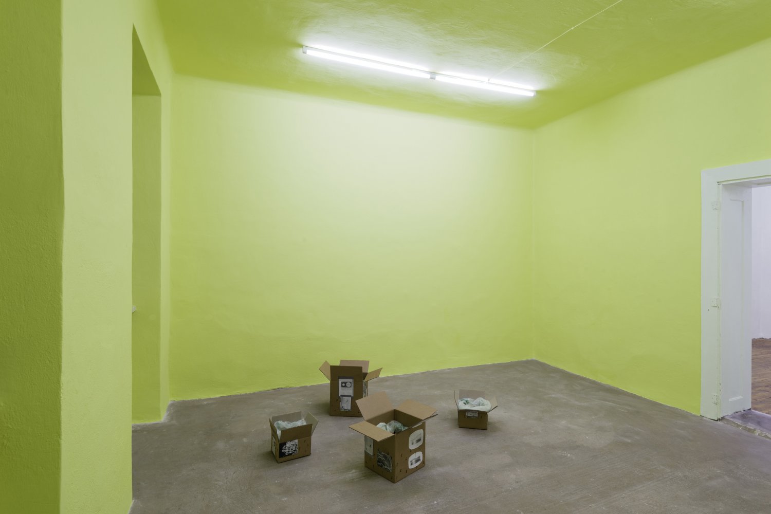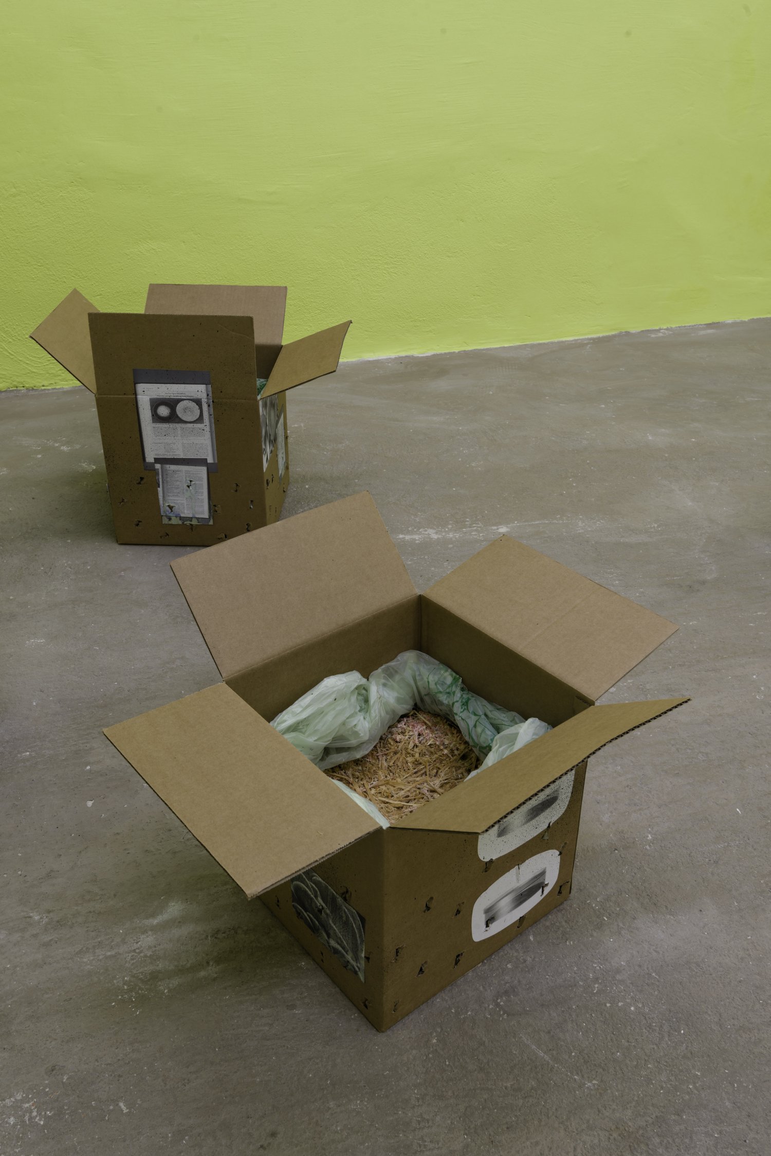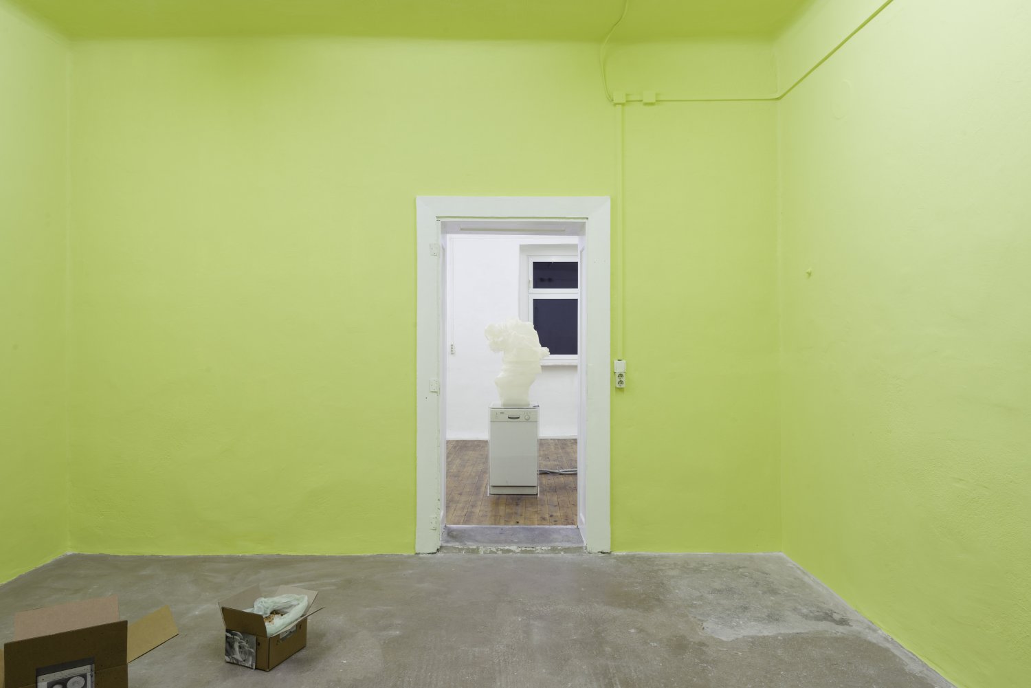 The installation included a range of wall paint, sculpture, video and photography; an assortment of materials from snake venom paint, oyster mushrooms in shipping boxes to 3D printed polythene sculpture on washing machine and a Kirlian polaroid. Staging fabrications within conceptions of contemporary and ancient mysticism, the works brought together challenge the humanist experience and explore thresholds of self and other.