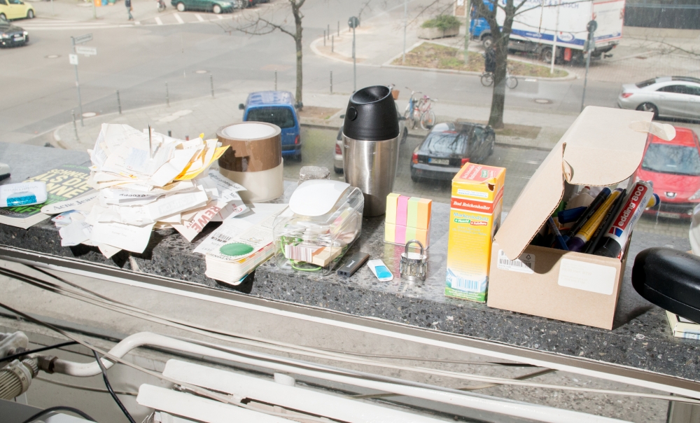 It was the opposite of what I have become known to work with. How should I put it — my voice was very uncomfortable. I sounded like a secretary that was clearly unfit for picking up the phone. The work I am showing in Zürich is a continuation of this project. In the gallery there will also be blinds that automatically drop before the piece is played. Like a visual sign that one is ‘autofoffice.’ The blinds fall with a clumsy movement — too far down — as they hit office plants and other objects. They do in some way perform a mechanical ‘tschüß.’