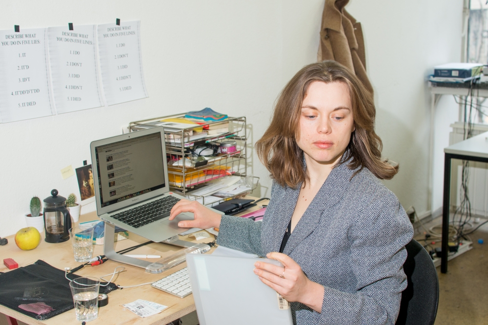 HL: Of the time I spend on work, maybe only 20 per cent goes to actually making work. The rest is communication. One has meetings, Skypes about things, sends e-mails, does research. On busy days, I keep checking my phone all the time, when I get home, as well. It’s as if I cannot unwind. We live in an ASAP-culture, where through social media one also builds avatars of oneself. I have a Facebook avatar. And then I have the artist Hanne Lippard, with her own homepage.