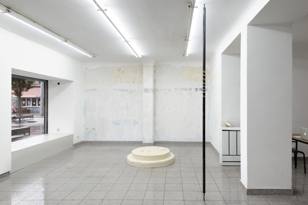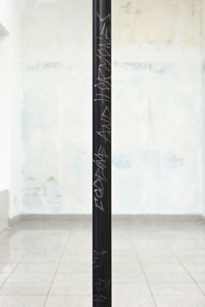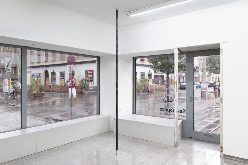 Maria Gorodeckaya, ‘Metal Pole Nr. 2, Lust, Dragon Tattoos, “Female” Imaginary, Hormonal Disbalances’ (2016). Installation view. Photo by Georg Petermichl. Courtesy the artist + Kevin Space, Vienna.