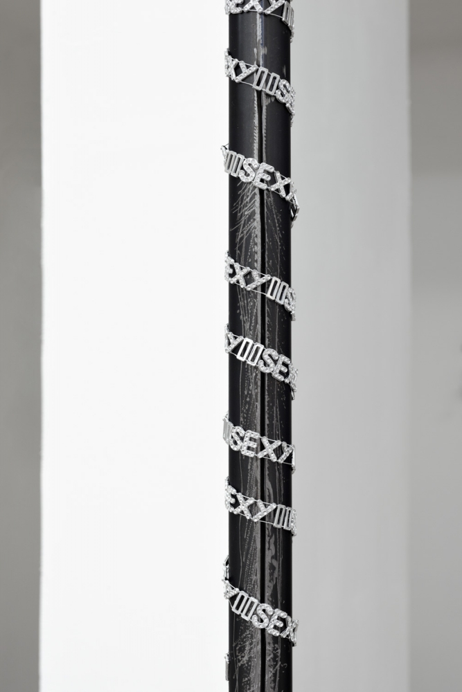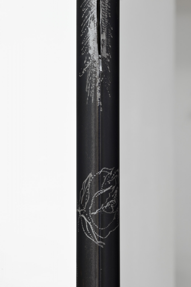Maria Gorodeckaya, ‘Metal Pole Nr. 1, Lust, Dragon Tattoos, “Female” Imaginary, Hormonal Disbalances’ (2016). Detail. Photo by Georg Petermichl. Courtesy the artist + Kevin Space, Vienna.