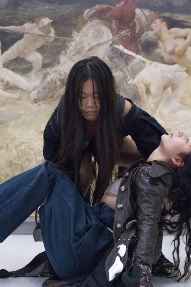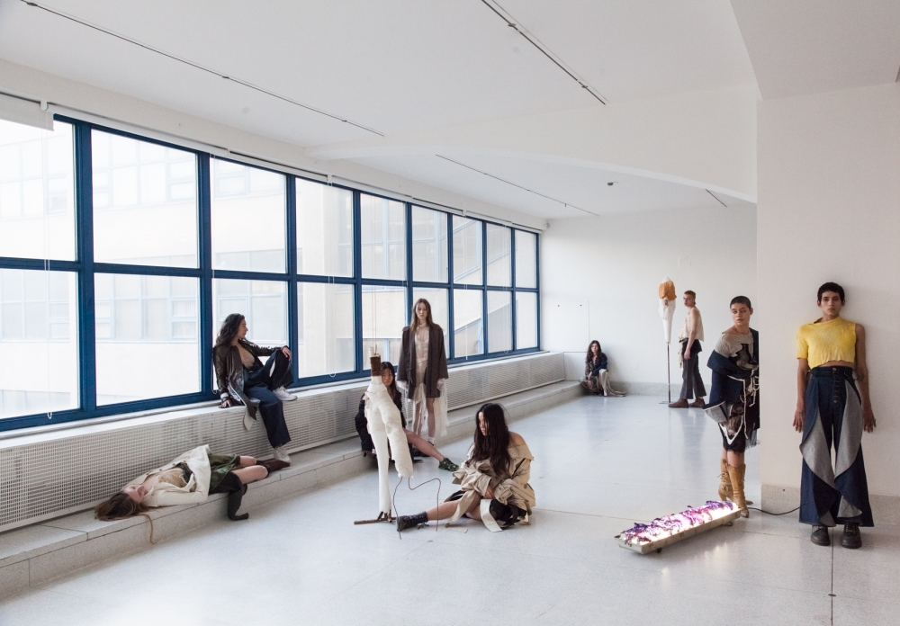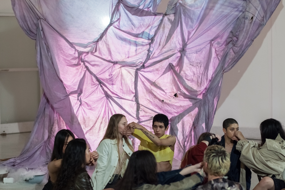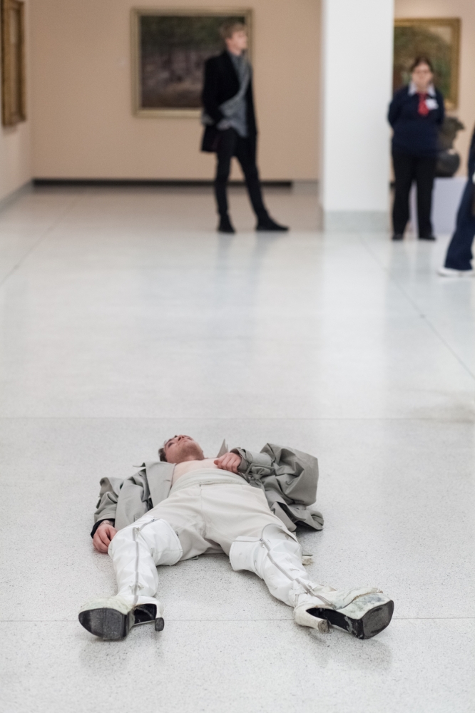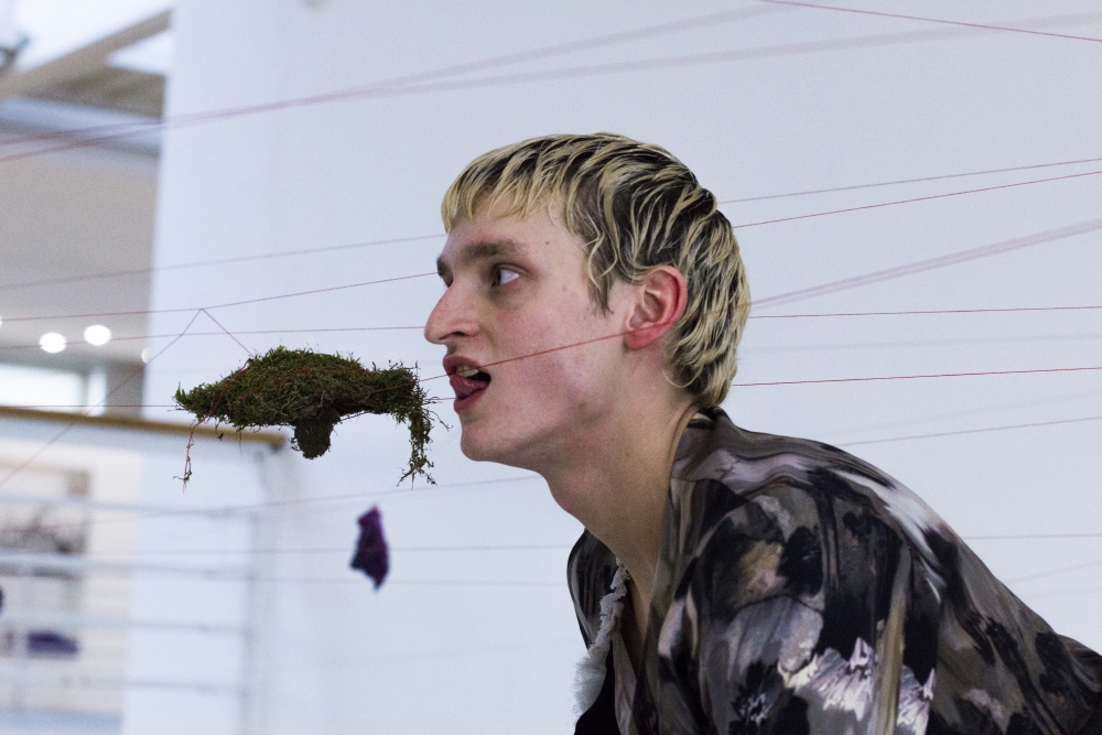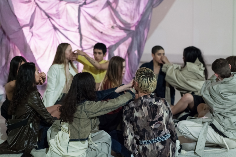 The performance was organized by Are and was part of exhibition Against Nature (2016) curated by Edith Jerabkova and Chris Sharp, devoted to exploring the young Czech art scene. The performance was prepared in collaboration with Anne Sofie Madsen who made the clothes worn by participants, which included models who’ve walked for Vetements and Hood By Air, like Coco Kate, Eva Che, Roman Ole, and Katrice Dustin, among others.