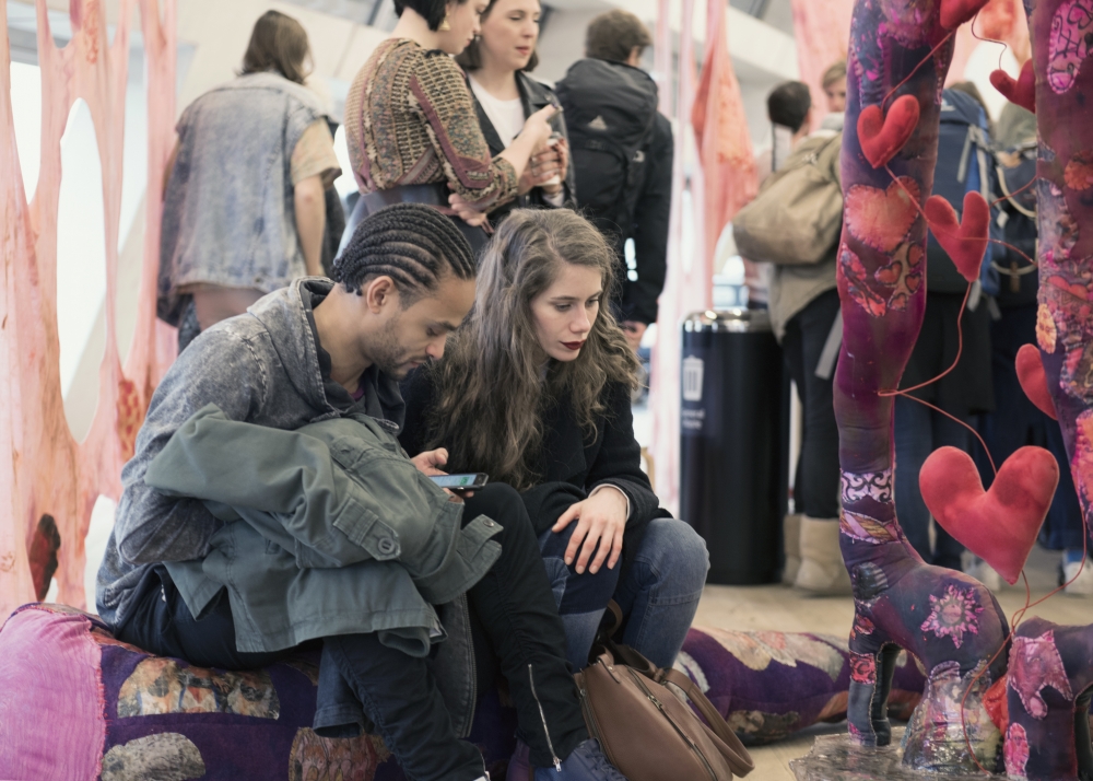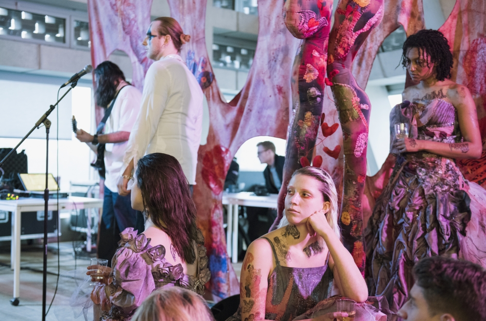As part of the Tate Exchange programme, the show included an open discussion panel reflecting on the theme of “access and considering the public’s role as museum and gallery visitors,” led by Rozsa Farkas and Lotte Andersen, and ran at the South Bank institution from 12pm to 6pm. London-based artist Papadopoulos, meanwhile, created a performative installation in the space throughout the day, in response to Stockholm-based performer Leandoer’s music. The two communicated ideas of transparency via phone and email in the lead up, culminating in an event where the public was admitted, while Papadopoulos’ drapes and sculptures slowly set the womblike, tattered fabric stage for Leandoer’s performance to close.