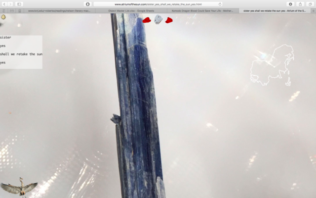 LR: Oh, I am interested in accretion, the coral reef of ideas, sediment, but also in excavation as a method of recovery. Like what did humans figure out a couple thousand years ago (or 20) that we’ve forgotten that might prove useful today. The Atrium just loves layers generally and the points at which they touch and what touch can do. Folding folds on folds and all that touching!**
