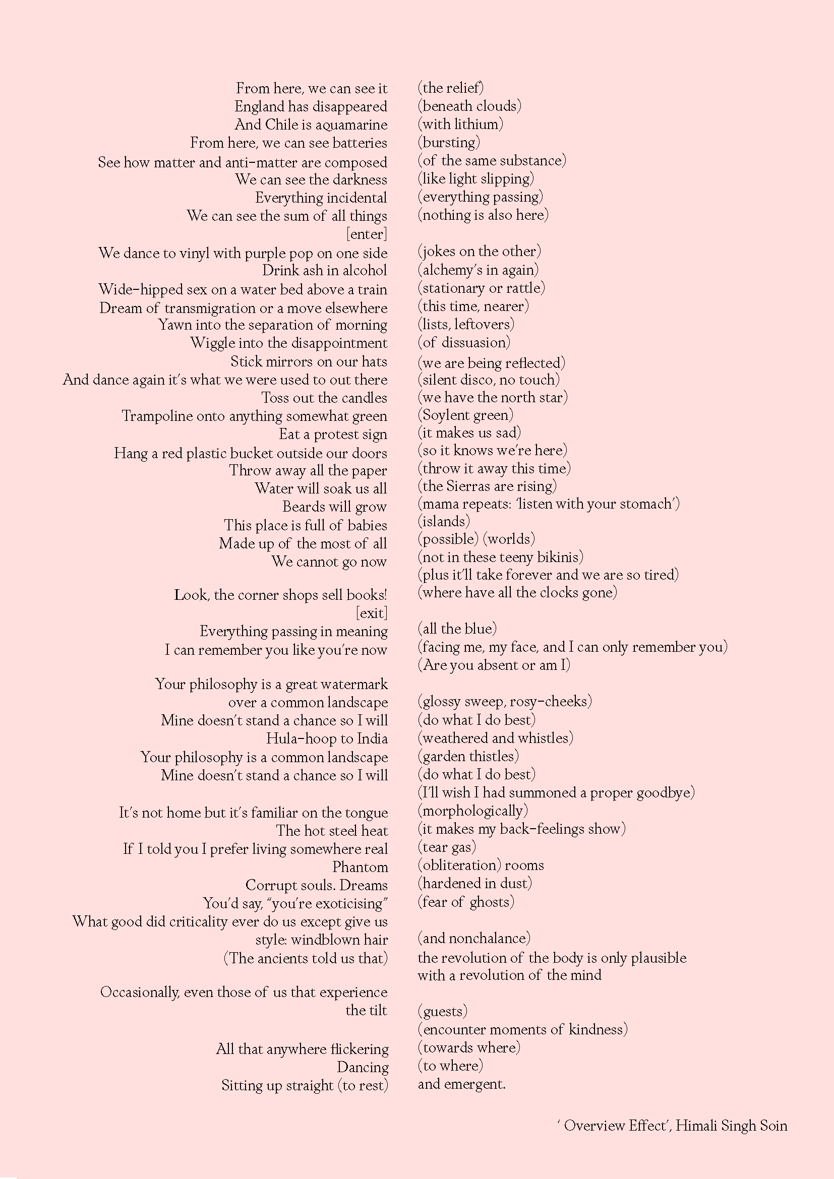 Himali Singh Soin is a London/Delhi-based poet and performance artist.**