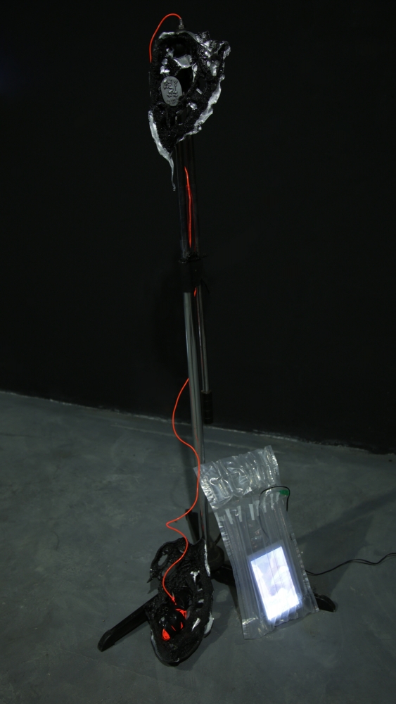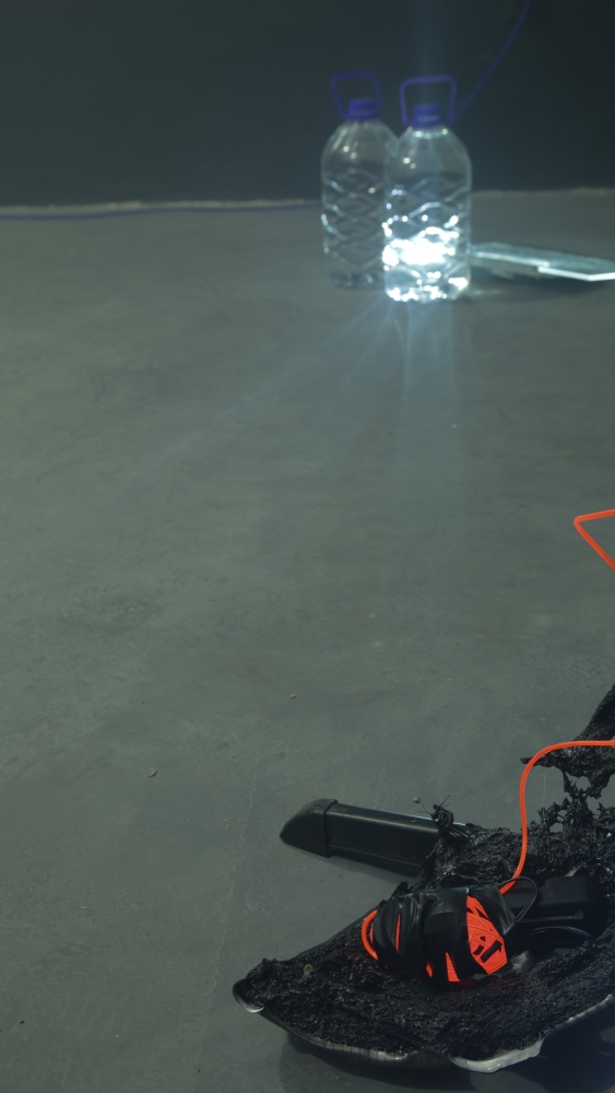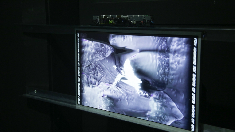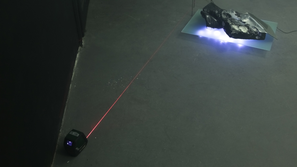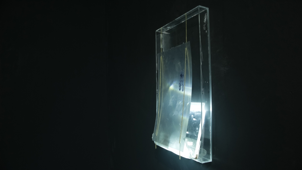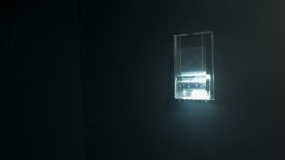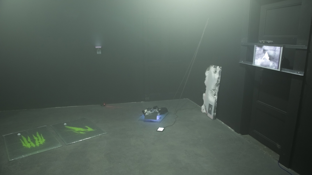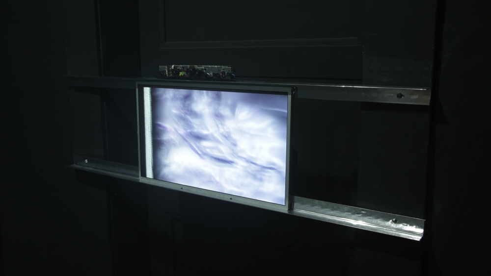 The installation included video and sculptural elements, as well as an accompanying poetic text, with an excerpt that reads: