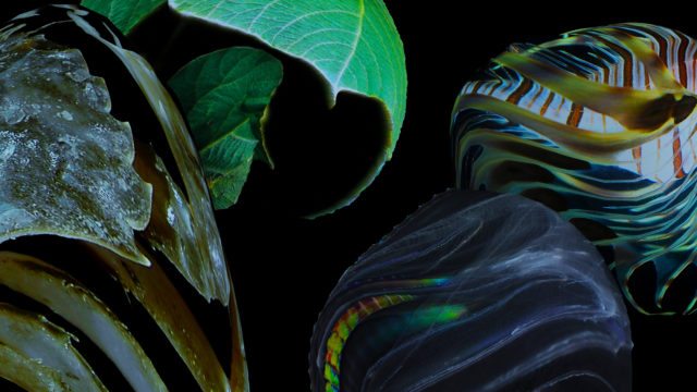 Both artists work with digital technology and and animation. London-based Papamargariti here presents mixed media installation ‘Soft Bodies, Invincible Critters I-IV’ of fabric prints, laser cut and etched fluorescent acrylic, as well as HD video projection on black sand ‘Precarious Inhabitants II’. Los Angeles-based Triantafyllidis exhibits three-channel screen video ‘Seamless,’ with sound design by Diego Navarro. The individual works enter into a dialogue that, as the press release describes, “traverses the landscape, observing it with the curiosity of an explorer, oscillating between omniscient distance, and near-erotic detail.”