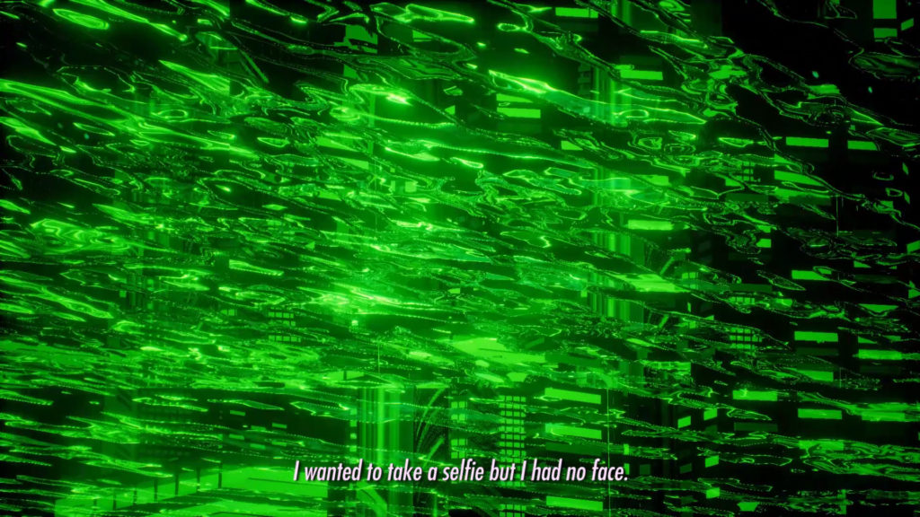 As winner of the 2017 Jerwood/FVU Award, Lek was commissioned to produce ‘Geomancer’ (2017). Whereas ‘Sinofuturism’ gave humans robot properties, ‘Geomancer’ anthropomorphised artificial intelligence (AI). The 48-minute “mini-opus” follows a weather satellite of the same name who possesses human self-awareness and emotion, and can even dream. Lek says the premise is strongly related to Zhuangzi’s tale of The Butterfly Dream, where a man wakes from dreaming he was a butterfly not knowing whether he is a man or a butterfly, dreaming he is man.