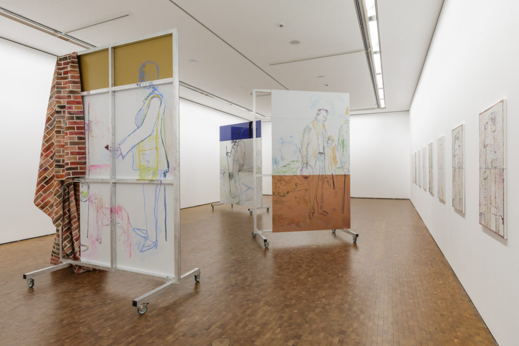 Reena Spaulings, HER AND NO (2017). Exhibition view. Photo by Britta Schlier. Courtesy the artist + Museum Ludwig, Cologne.