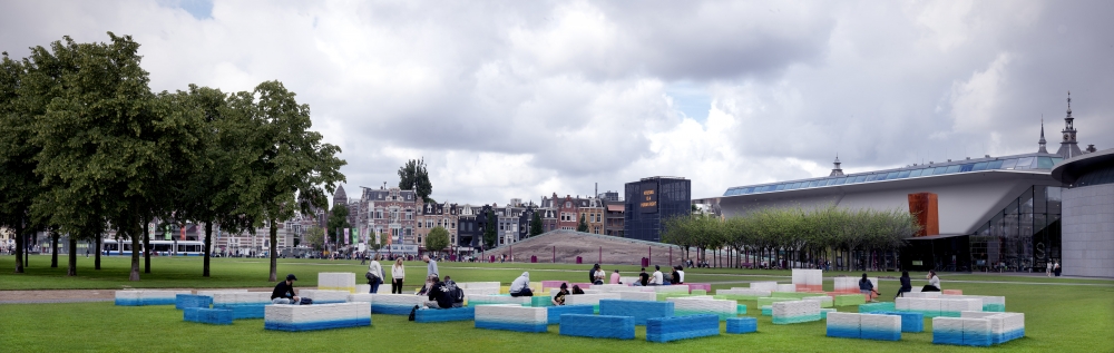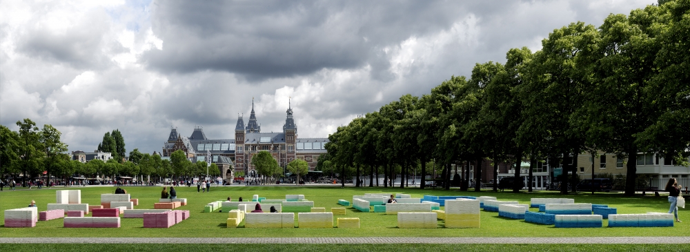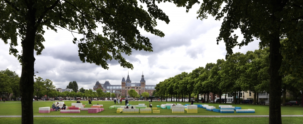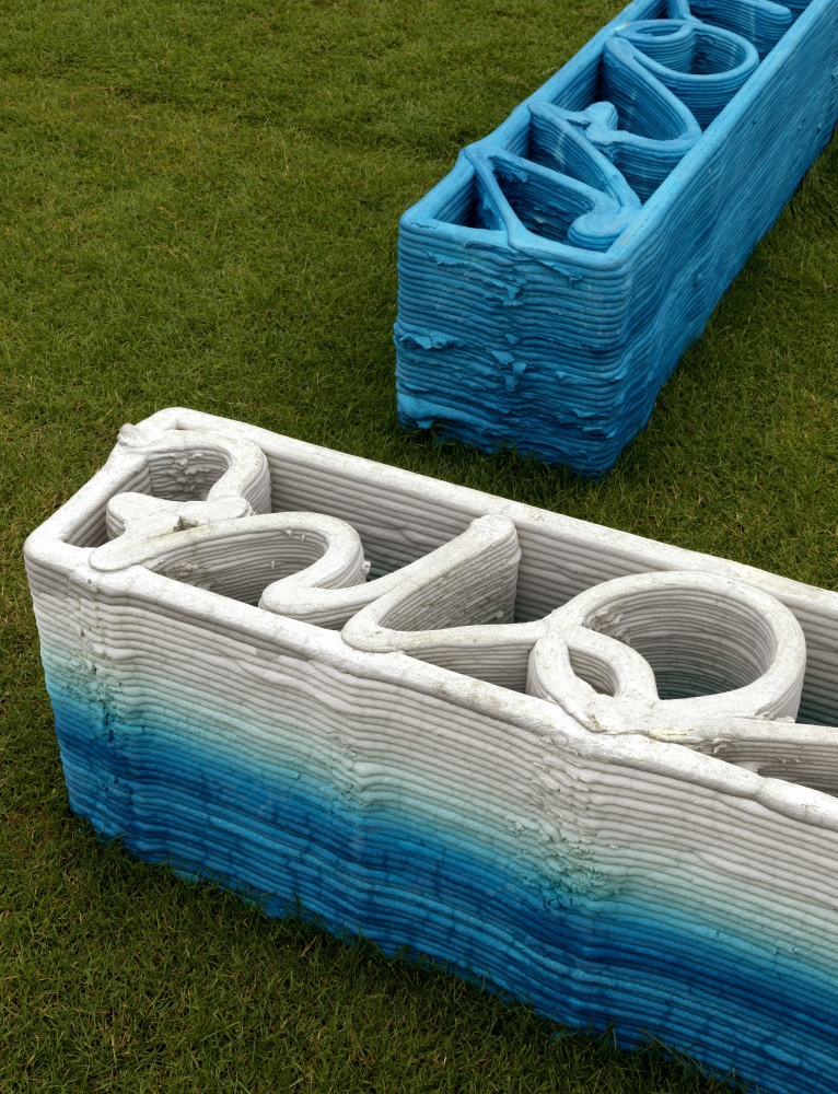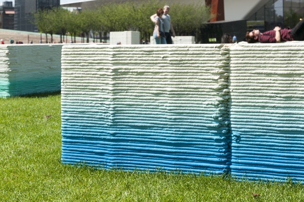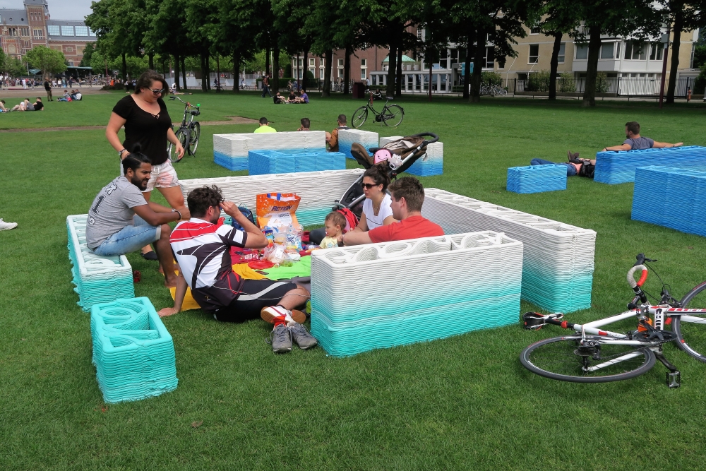 Installed at the site of Museumplein, the work sprawls across the green open space; free and accessible, the 3D printed concrete forms create a landscape of rooms. A comment on the contemporary housing situation, the collective explore, “issues connected with the global housing crisis, mass production and the relationship between public and private.”