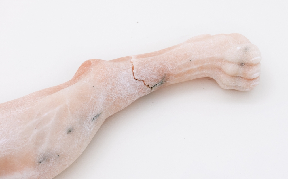 The New York-based artist is most known for her red ink drawings, and has recently moved towards sculpture as well. Objects made of marble and cut-out floor works are strewn across the room, as if you are entering a moment of after. A dismembered dog becomes a metaphor or signifier to explore “the physical, psychological, and political destruction of the body.”