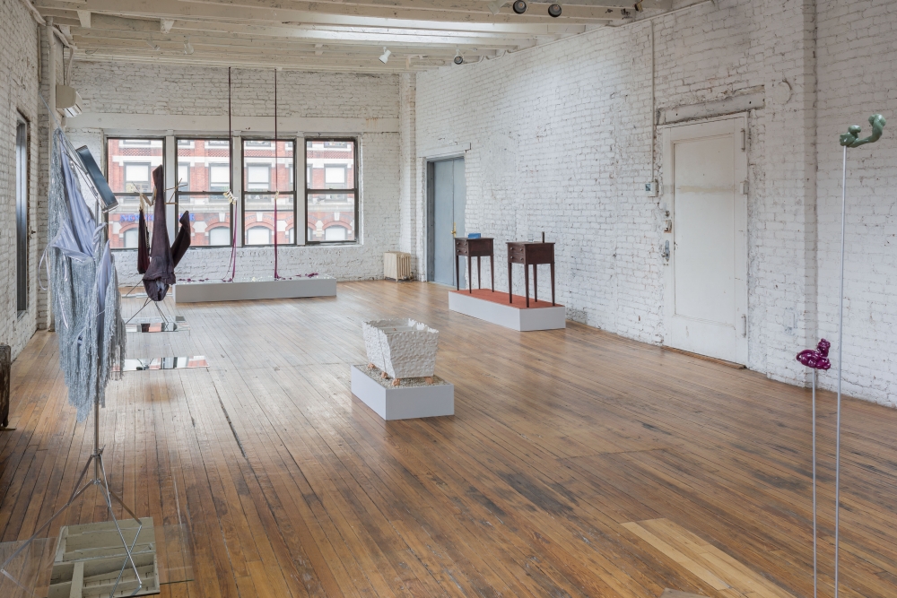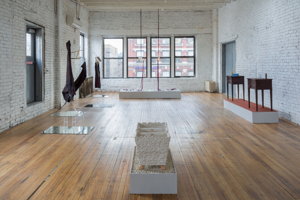 my fossil, my echo, my excess, my scrap (2017). Exhibition view. Courtesy the artists + MX Gallery, New York.