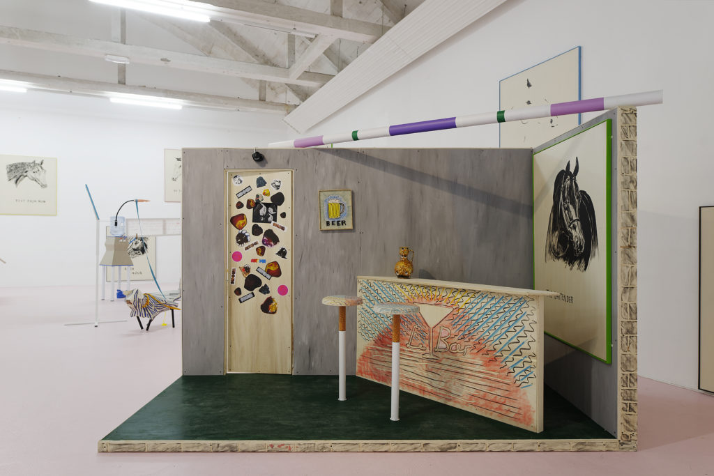Papier-mâché, music stands holding paintings, happy birthday cards, cacti and other anthropomorphized inanimate objects. Pop up bars, giant eggs and toothbrushes. The work of Aurora Sander is often laid out in a humorous display akin to a horse show jumping course; the obstacles as art. Through appropriation and re-presentation, the duo (who is Ellinor Aurora Aasgaard and Bror Sander Berg Størseth) create objects and characters that sit awkwardly in a space together, telling absurd and unresolved stories.