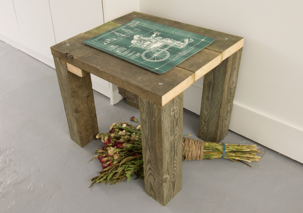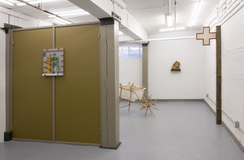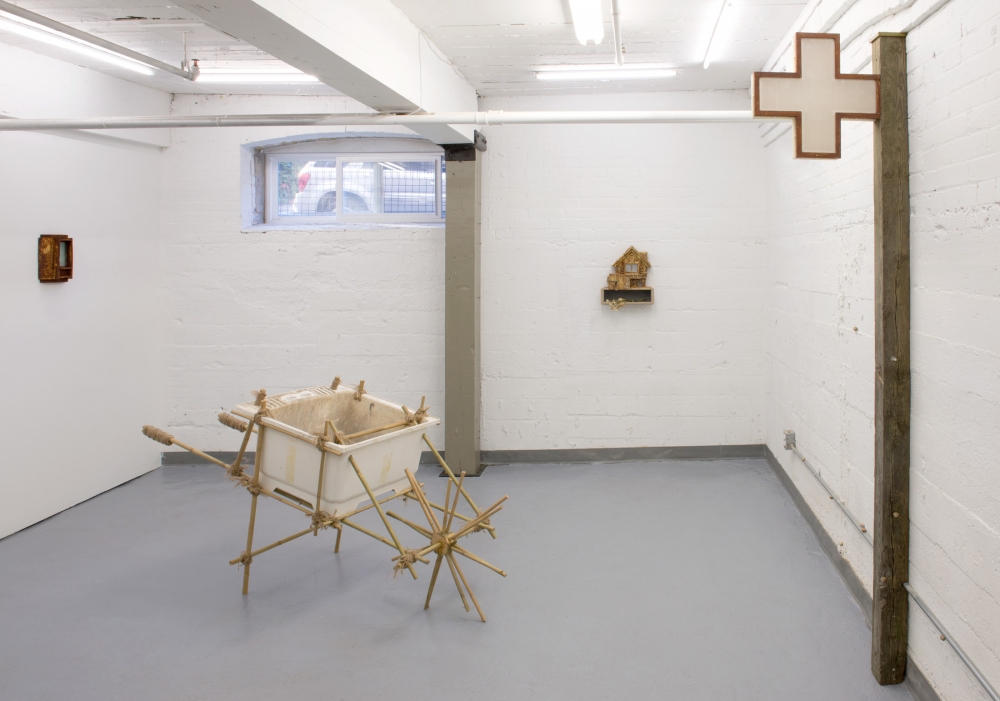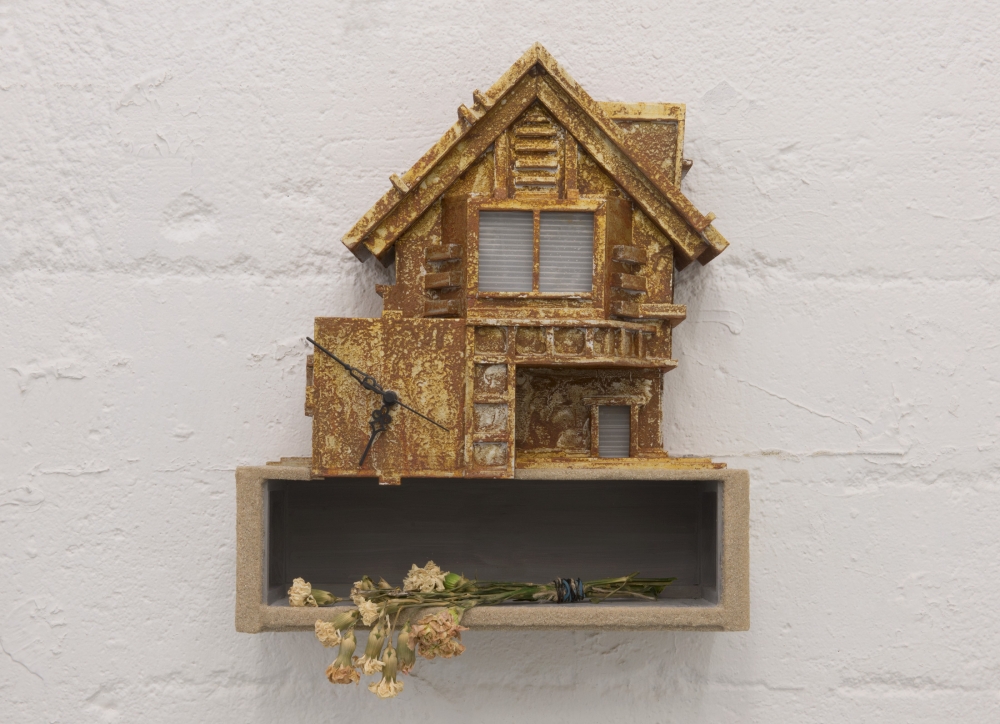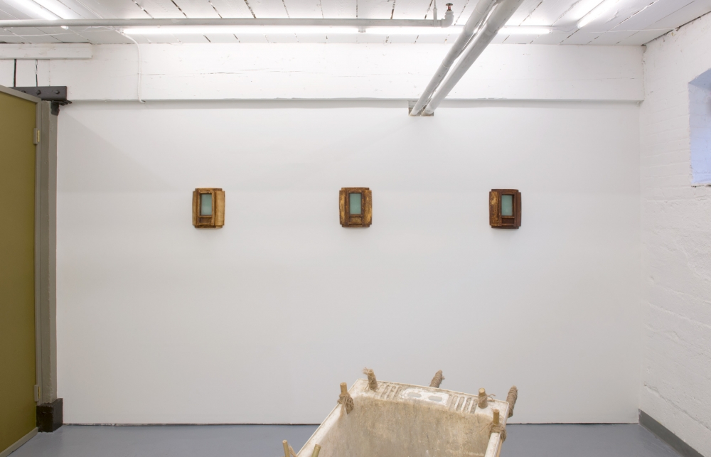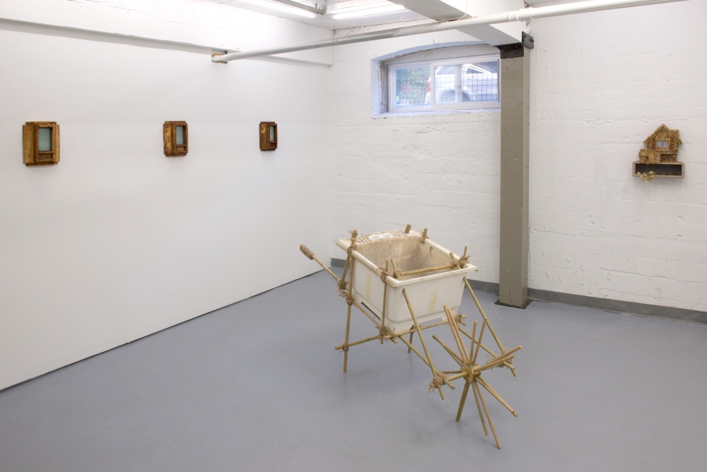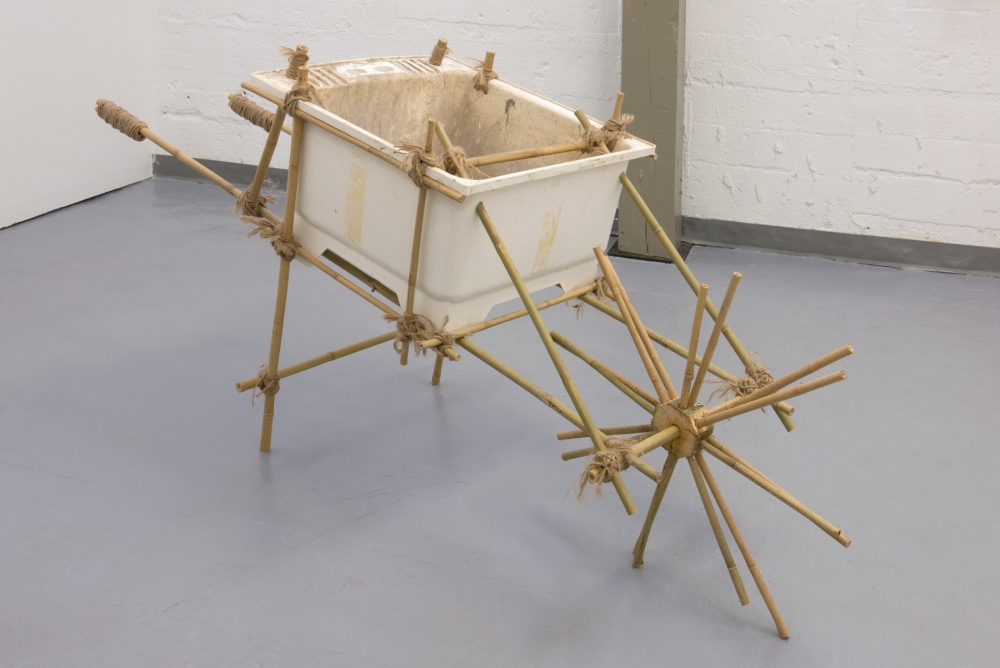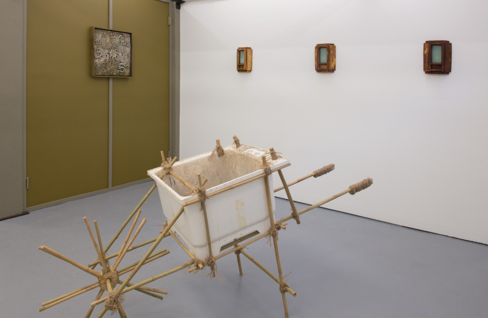 The Canadian-born, Berlin-based artist presents an installation using a number of materials, from corrugated plastic, reclaimed wood, sand and bamboo to snail shells, flowers and sink basins. Symbols, meanings, place and time converge to create a new meeting place.