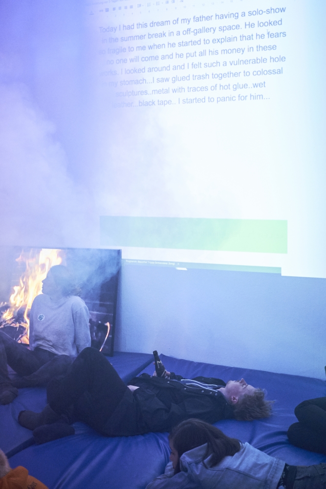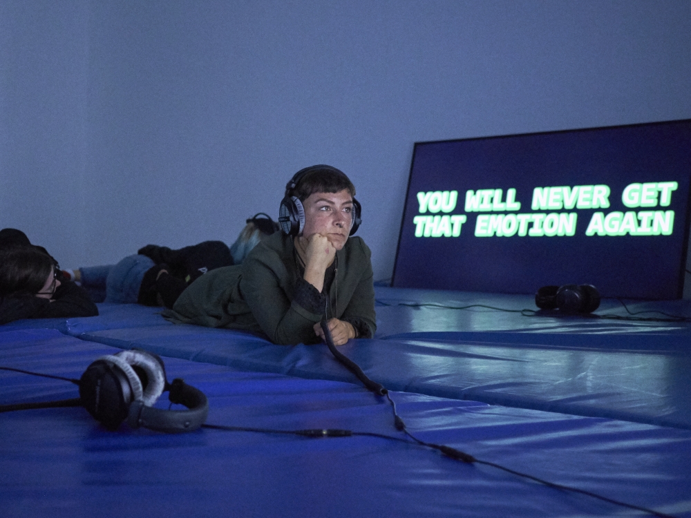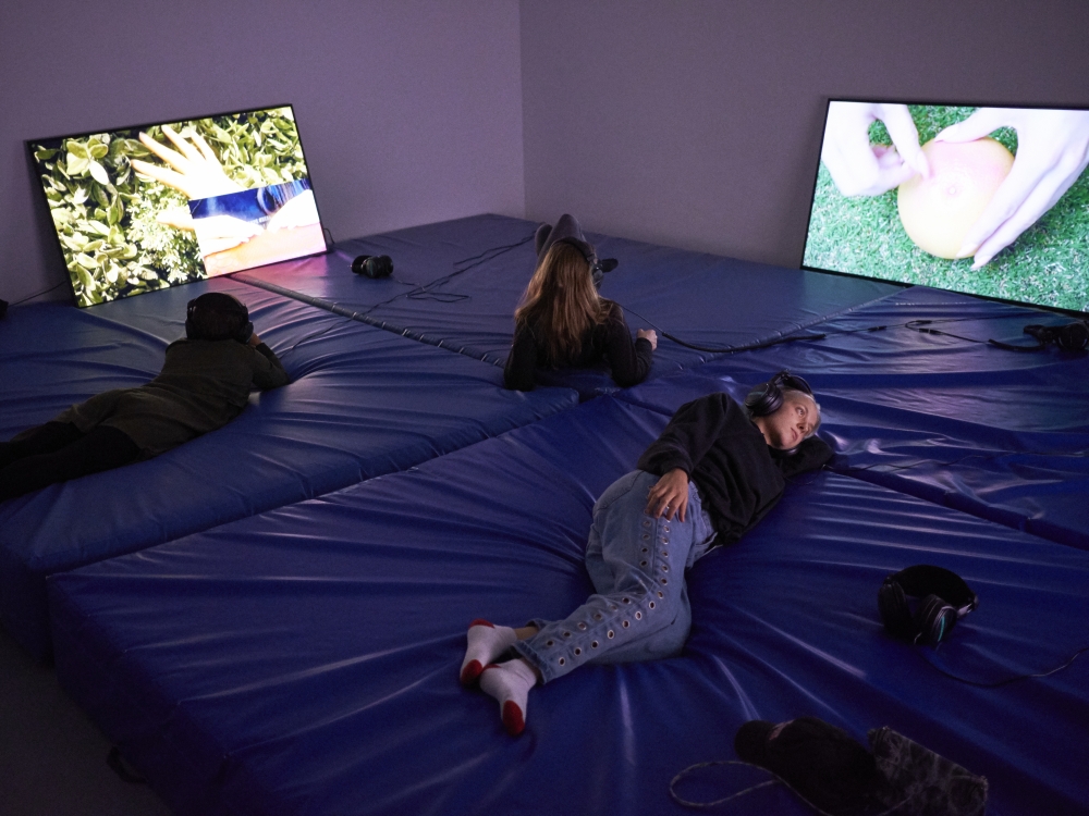 Organized by Carranza, the pieces explore what it means to practice (self-)care, asking questions like, “Are sleeping visitors in an exhibition disregarding the art, or is this act of self-care the political use of agency? In an exhibition designed as a place to sleep, do visitors remain consumers when using the facility? Is relaxation just the reproduction of labour power?”