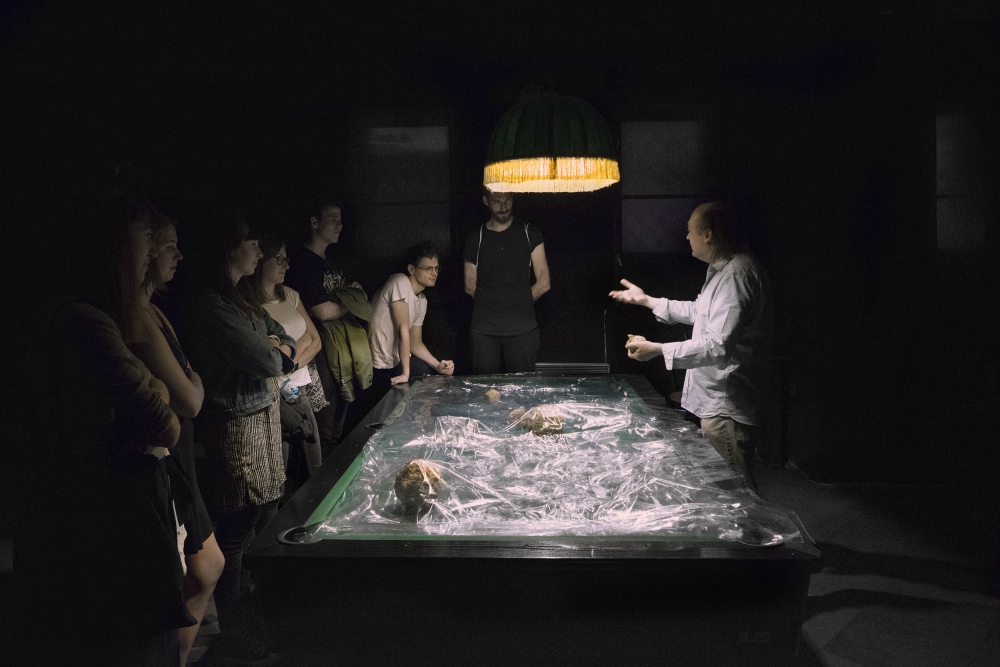 Curated by Jan Vitek and part of an ongoing project that sees short-term shows happening in various places, the evening brought together some of Jansa’s recent multimedia works, including video, an audio guided tour and sculptures. There were also performances by contributors the artist refers to as ‘heroes,’ including philosopher Kamil Nábelek — who gave a lecture on the Ontology of Celery — and Michal Šupák — who performed a live piano rendition of Rihanna’s ‘We Found Love.’
