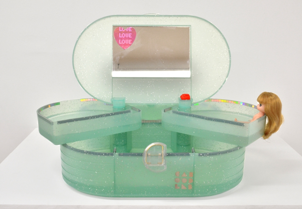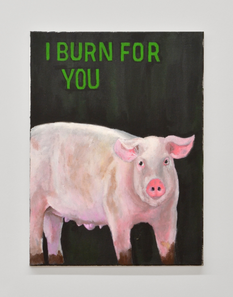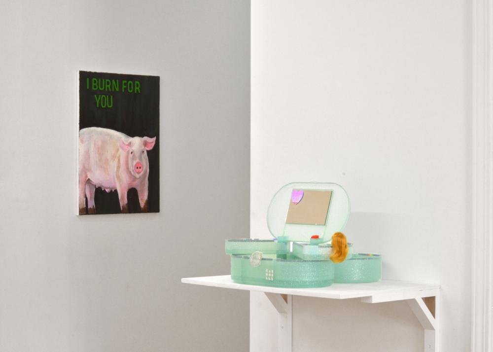 From paintings of cows, pigs and landscapes to miniature dolls and ballet shoes filled with dirt, the multimedia installation responds to online saturation, abundance and individual filtration systems, where trends and symbols become highly specific and hold particular meaning for different people.**