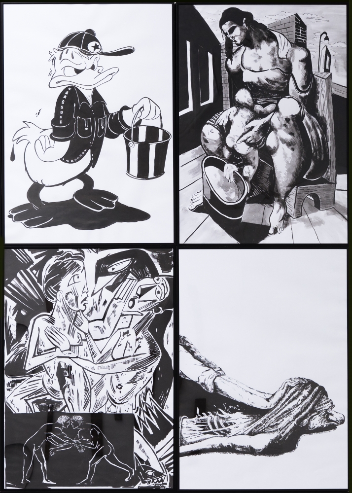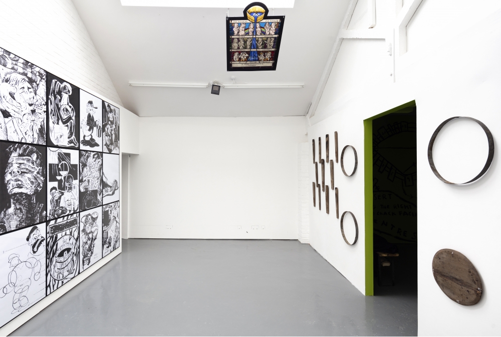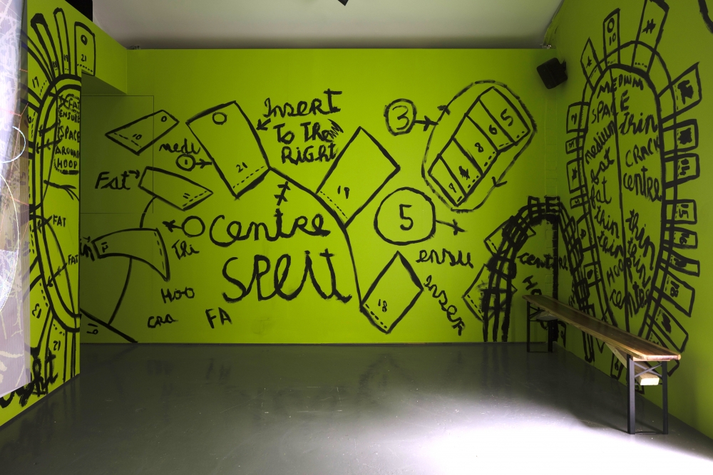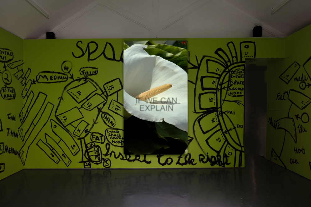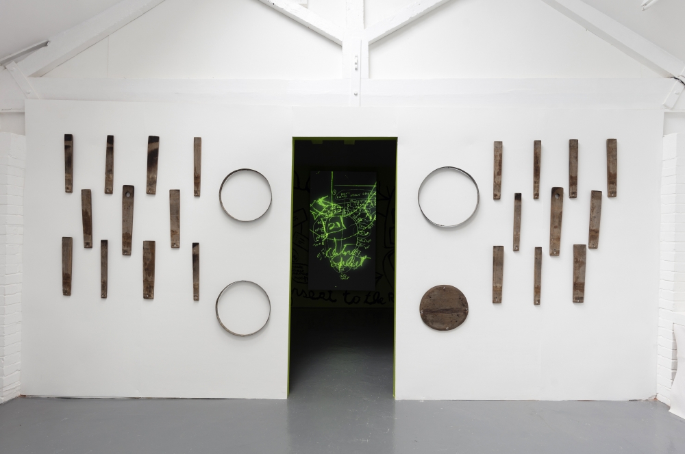 “True love can transform even the simplest of objects” is the last line in the press release, which fixates on the bucket; its boundaries, borders, metaphors and purpose. In his multimedia installation, the Berlin-based Irish artist brings together wall paintings, drawings, video and sculptural elements to explore intimacy and his relationship with his father through the act of having and making an art exhibition.
