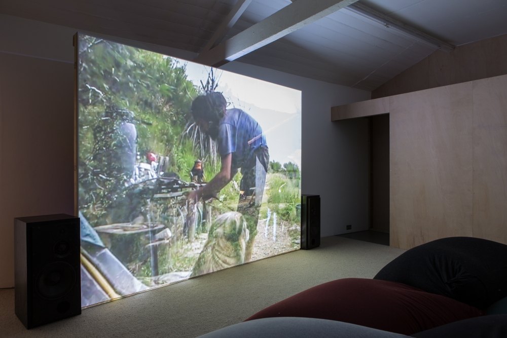 Mimosa Echard, ‘Zia Margo’ (2017) + ‘Map’ (2016) Installation view. Courtesy the artist + Cell Projects, London.
