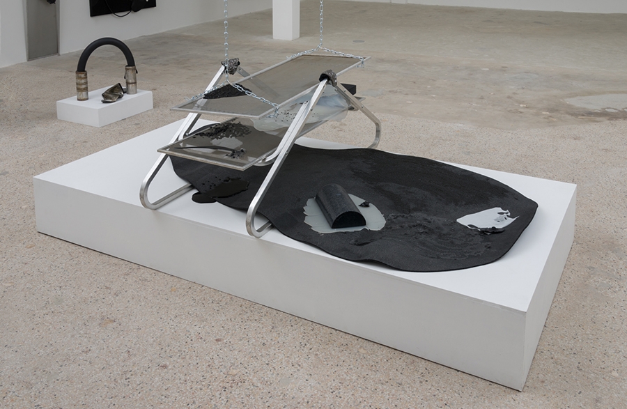 “There are a few things about oil that really excites me, and one is that oil is made from the petrifaction of living matter, so there are pockets that cover the earth of this material that was once living and now is decaying, and when it surfaces it creates a lot of energy,” Dunham says after breathlessly running through a detailed and uncannily accurate history of petroleum: from its discovery in a preindustrial era still powered by animal fats, the force of kerosene, Thomas Edison’s first demonstration of the light bulb in 1879, to the intersection of economic and political interests that fuelled the mutual development of the oil, automotive and military industries in the United States. “When I first started thinking about that I got really excited about the reflections also between human bodies. These pockets of shadow material inside of our own bodies, hidden deep inside of us. And yet, when this lower-den material comes to the surface there is potential for an incredible amount of power,” she says about the conceptual idea of emotional trauma lurking in the unconscious. “In the case of oil all it took is a flame, a spark to translate the material into a new kind of energy. I get really excited about these energetic systems, energy in general, energy as a means of exchange.”