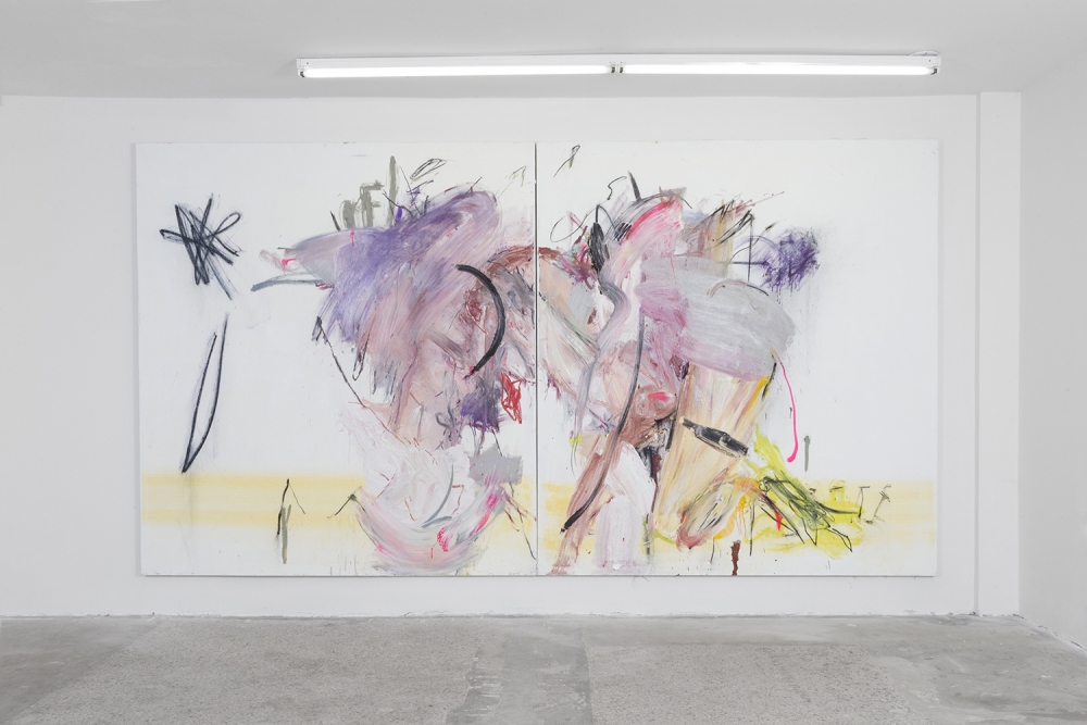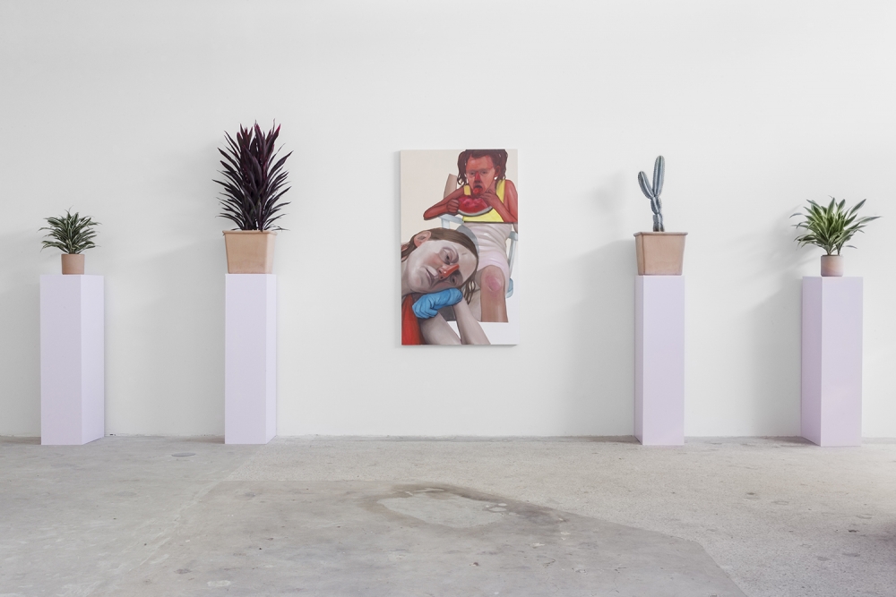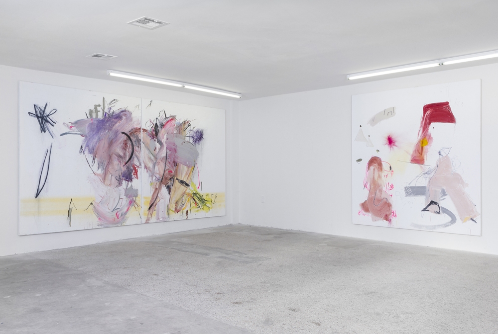 Tokyo/Los Angeles-based Rost, meanwhile, explored spirituality and primal imagery with three new paintings in Everybody Wins, where instinct becomes “a conduit for a union of hidden emotions and unexplored movements.”**