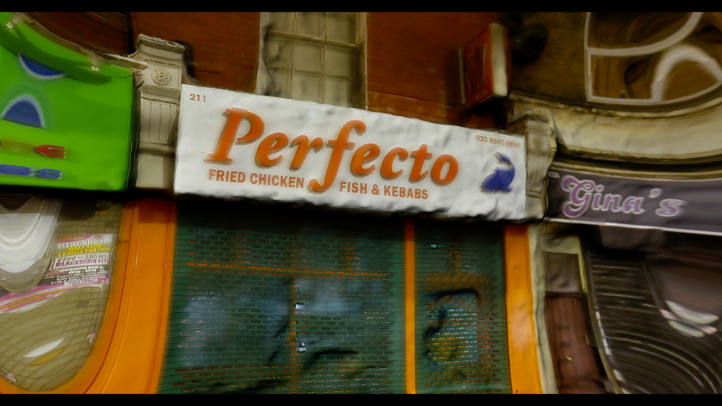 This is where the experience of a night shift worker and the strains of modern life on the mind and body of a human more generally, converge in Slides. In one scene, Akıncıtürk is seen and heard walking through London’s Deptford High Street describing how local businesses adapt to a constantly shifting market as if they were smartphone apps: “The shops around here, look at them, it’s not what it says on the tin. It’s all because the shopkeepers are following recommendations from various trading apps and they jump on to the next hot topic, as long as it’s cheap enough to exchange the stock and they also track their neighbours, to figure out what they’re buying next. So remember, people are pretty whimsical but at the same time they’ve got habits.”