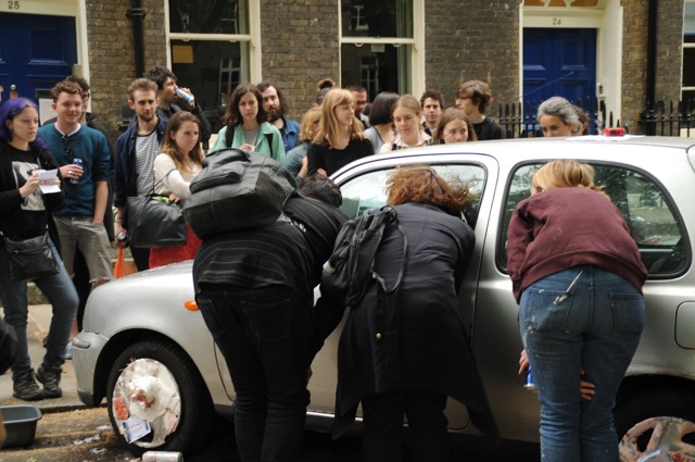 For Three Milks I am doing a performance where I am driven in a car very slowly from my house to the house where the three milks are. It is a tiny way, just around a corner. The drive is called Grace Slick. She wrote the song White Rabbit. The first time she was involved in White Rabbit the song was long but not many people heard it, and the second time around, the song was tiny but millions still hear it. It was as though the smaller song took a pill and slotted into the bigger one, and yet the bigger one is tiny in length.