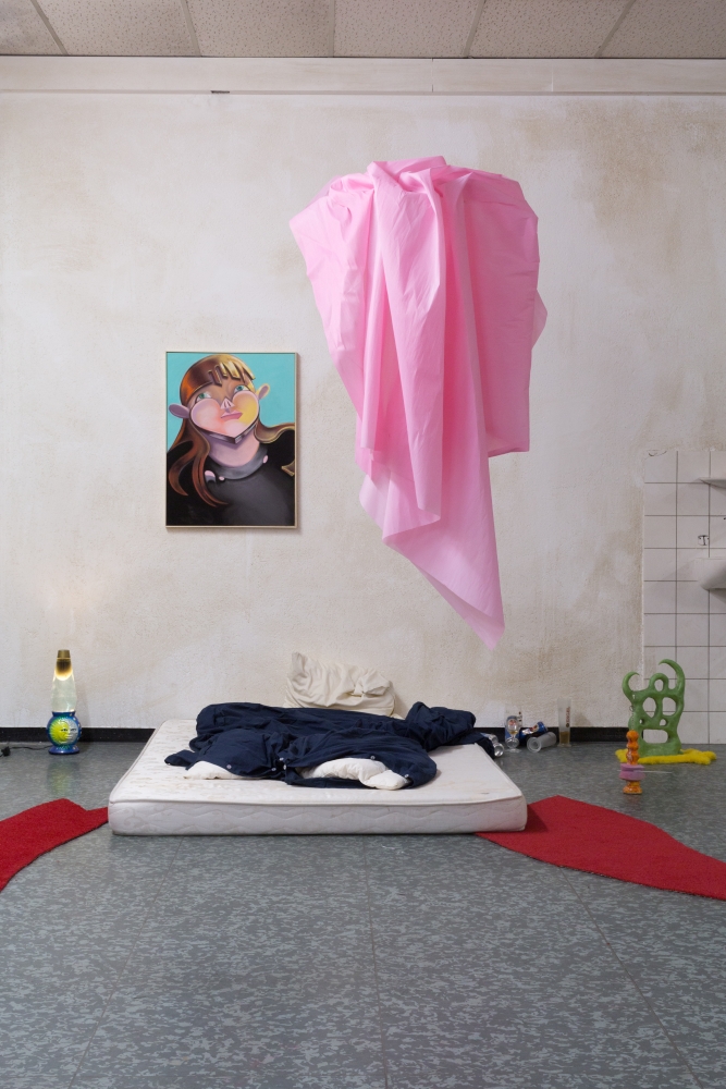 Put together by Berlin-based artist Kneer, the exhibition is framed by the title (which roughly translates to ‘Youth is drunkenness without wine’) as well as a text he wrote that moves erratically between emotions and mood swings from the perspective of a pubescent experience, “rising from the ashes like a phoenix, an all-star, an eye-sore, a total fucking loser, leaking, dripping, until end times, a liferuiner.”**