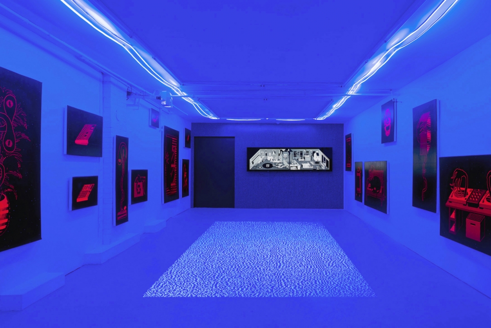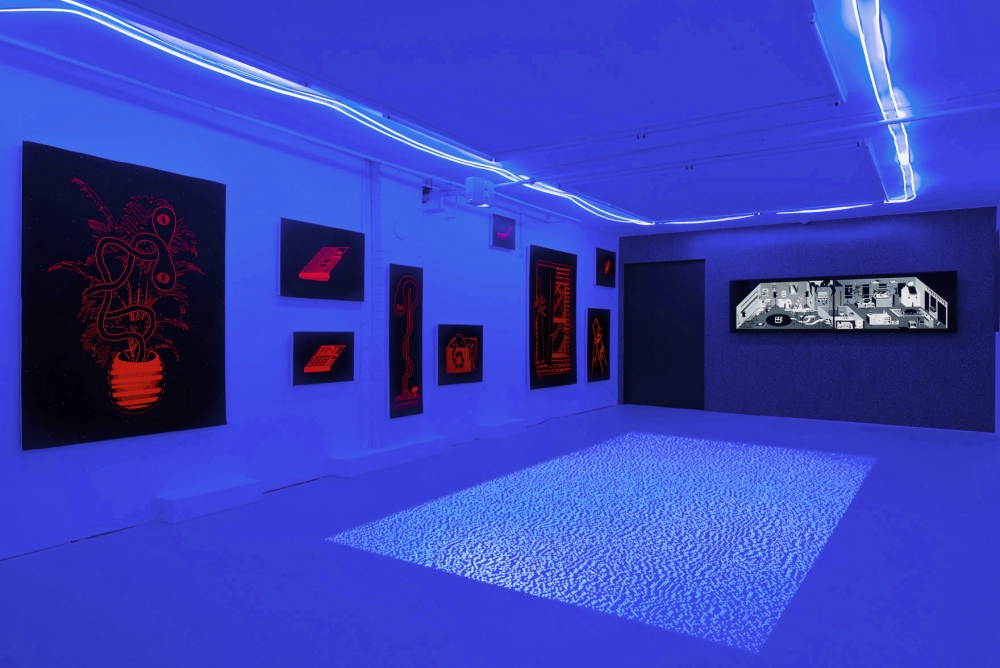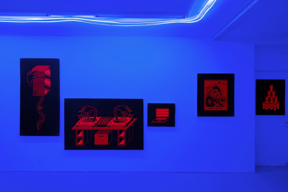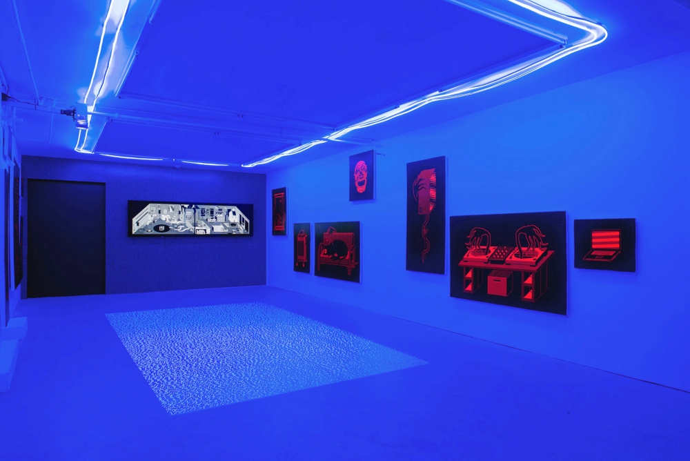 Through the use of laser prints mounted on high density foam, fluorescent pigments and 8K animation, the French born, Vancouver-based artist collages memories from three underground venues mentioned in the title. Contributing to the unique cultural landscape of the city, the exhibition pays homage to these artist-run spaces where “parties, dancing, friendships and excess” could take place.
