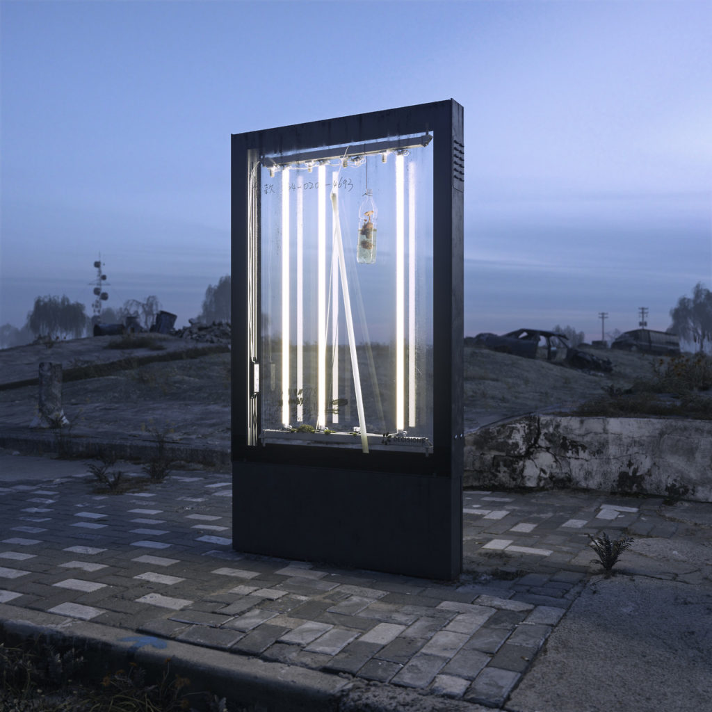 Likely the most well-known artist on this list, Kim Laughton’s CGI creations have accompanied multifarious live and DJ performances at Shanghai’s ALL Club and beyond, while he also creates temporary physical installations for club environments. A recent playable video accompanied the rebirth of TCF’s long-dead alias Craxxxmurf, where a Smurf sits centrally in a barren wasteland, rocking back and forth, surrounded by the litter of countless empty Monster energy drinks, buttons on the gamepad allow us to change angles and adjust the laser lighting. For this video and many others, Laughton made use of game design programmes Unreal and 3ds Max, and modelling programmes Substance Painter and Mudbox. The playable video stands as an interesting affront to those tiring but ubiquitous arguments about revellers using their phones too much in nightclubs: why go backwards in nightclubs when we could go forward? Laughton also pushes this future-forward approach in his nightclub design work, both at ALL in Shanghai and OIL in Shenzhen. His visual work is as inextricable from China’s underground electronic music scene as that same club scene is inseperable from his work.