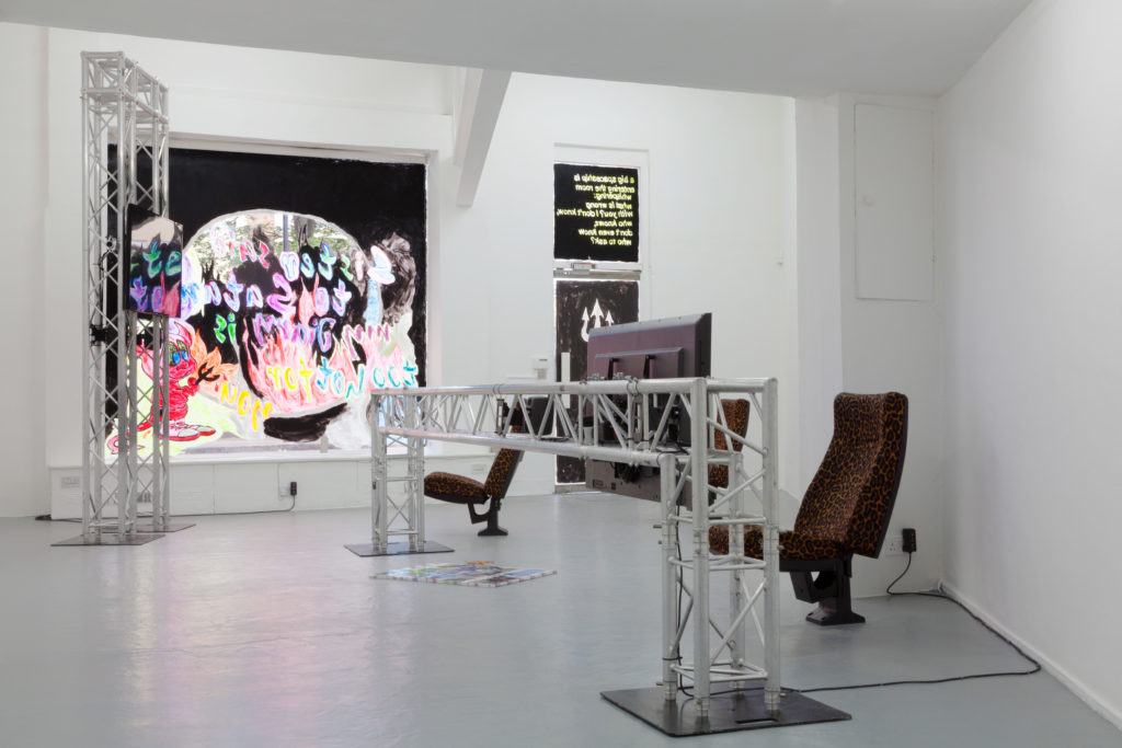 JA: I guess you’re referring to the collection of found images of puking teens that goes with the text. They are vulnerable and gross situations. Often puking is the body’s way of telling you that it has had enough, you pushed it too far. It’s a cleanse, it’s such a powerful body movement. In the work ‘Gag reflex / I wanna puke in heaven’ it is more about wanting to master this powerful body reflex. Just like eating disorders, it’s about taking control or even taking advantage of the only resources that you truly own: your body. In a way the work also plays and pushes the glorifications around eating disorders to its limits. Yes it’s a good conclusion; we are all a bit fucked and we don’t give a fuck anymore, a kind of rejection to just turn yourself inside out and to puke on everything. Yes it’s liberating. But also that intentions are so easy to manipulate, something sweet can easily just likewise be rotten. Together with positive affirmations and laughter the characters confirm for themselves that puking is a great idea. The affirmations are inspired from Elizabeth Gilbert’s book Big Magic, I love her books.