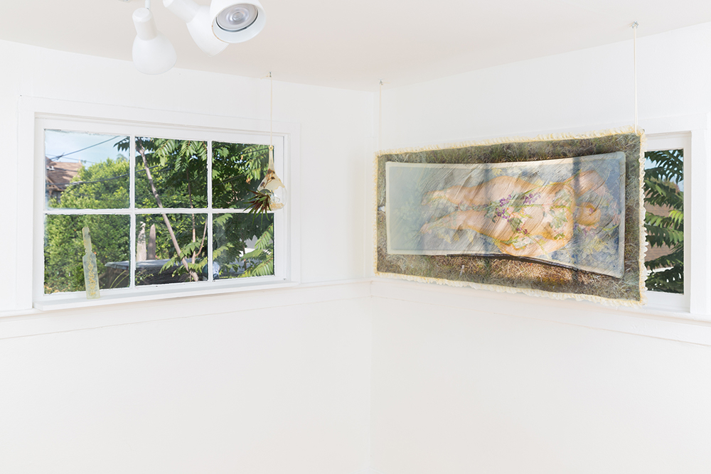 For an opening night performance, a model is enclosed in a vacuum bed, a tool used in BDSM breath play. The exhibition draws aesthetic analogies between this act, with its implications of consent and pleasure, to the tradition of flower pressing. Conventionally a gesture of humans’ mastery of nature, flower pressing is re-contextualised in Belleveau’s examination of normative sexual power plays. As noted in the show’s press release: