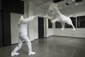 Sarawut Chutiwongpeti’s ‘Wishes, Lies and Dreams: “Anti-Colonial Power”’ is an arrangement of a tiger about to attack its headless hunter. Perhaps the headless hunter is about to shoot the tiger but either way it can only be seen through the windows of adjoining spaces. It’s located in a locked room of an upper floor of the TTT building, the former Hellenic Telecommunications Center of Athens. The two duelling predators hang in the air, manifesting a tense oppositional standstill where nothing happens, creating a situation into which an antagonistic indissolubility is inscribed. The work can serve as an allegory for an understanding of the entire 6th Athens Biennale (AB6) — running across venues in the Greek capital from October 26 to December 9  — opening up a political kaleidoscope of so-called post-internet art that is at times quite sobering.