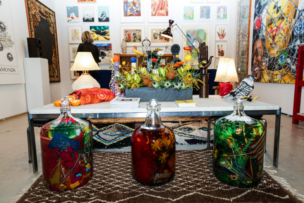 You can trace the volatile sociopolitical landscape of Los Angeles with these pins on a Google Map, along with the art-washing scenes of hipsters vaping poolside, while rumours circulate over who owns the lease for a certain DTLA depot. The uneasy feeling of demoralizing inevitability reaches as far as the Barker Hangar multi-purpose venue in the Santa Monica Airport, where ALAC is enjoying its 10th edition in the comforting space of a city that was. It’s a treacherous drive west in another unusual downpour but the parking is free and easy to find. There’s conversation inside around the rain, what to eat and the omnipresent threat of a bigger international art fair (“Frieze is Frieze”). Invigilators dress down and talk about Curb Your Enthusiasm. An antique market across the road seizes an opportunity by charging $15 for parking and announcing “MORE ART HERE” for the unaware. An ALAC attendant shakes his head and shrugs, “they’re just piggy-backing on it.”