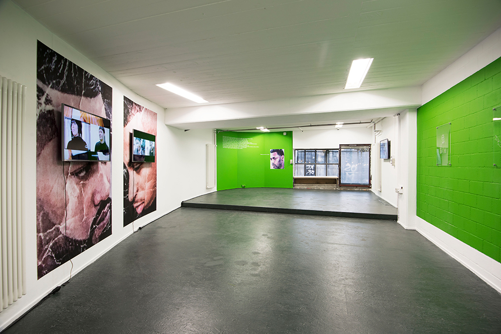 With an installation of video, prints and green-screen painted walls, IM LIVIN examines representations of queer men of colour as they pertain to the artist’s home of Switzerland. Prominently featured is the video series Wha Ha Happened Was… (2018), in which the artist filmed young queer subjects reenacting scenes from a reality TV series Love & Hip Hop: Atlanta. With the sound of the reenactments muted, the viewer becomes attuned exclusively to bodily gesture and gender performativity. Drawing from his knowledge of production artifice gleaned from a background as a photographer, Bantone’s exhibition uses popular media to bring attention to gender, sexuality and racial representation’s roles in constructing our senses of self.**