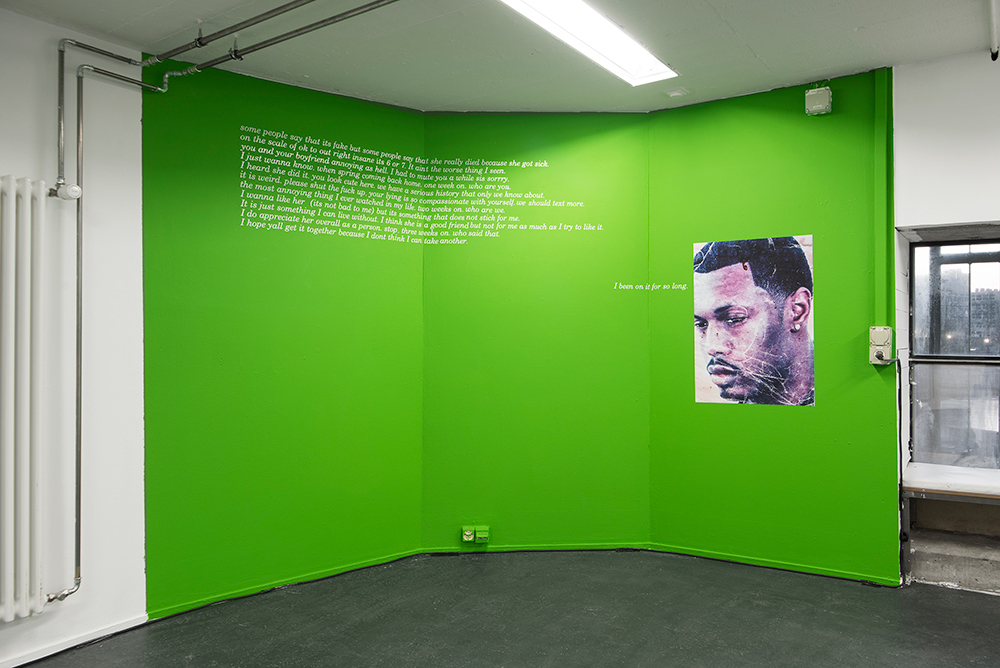 James Bantone, Wha Ha Happened Was (Rasheeda & K. Michelle) (2018). Installation view. Image courtesy the artist + Space Space Gallery, Zurich.