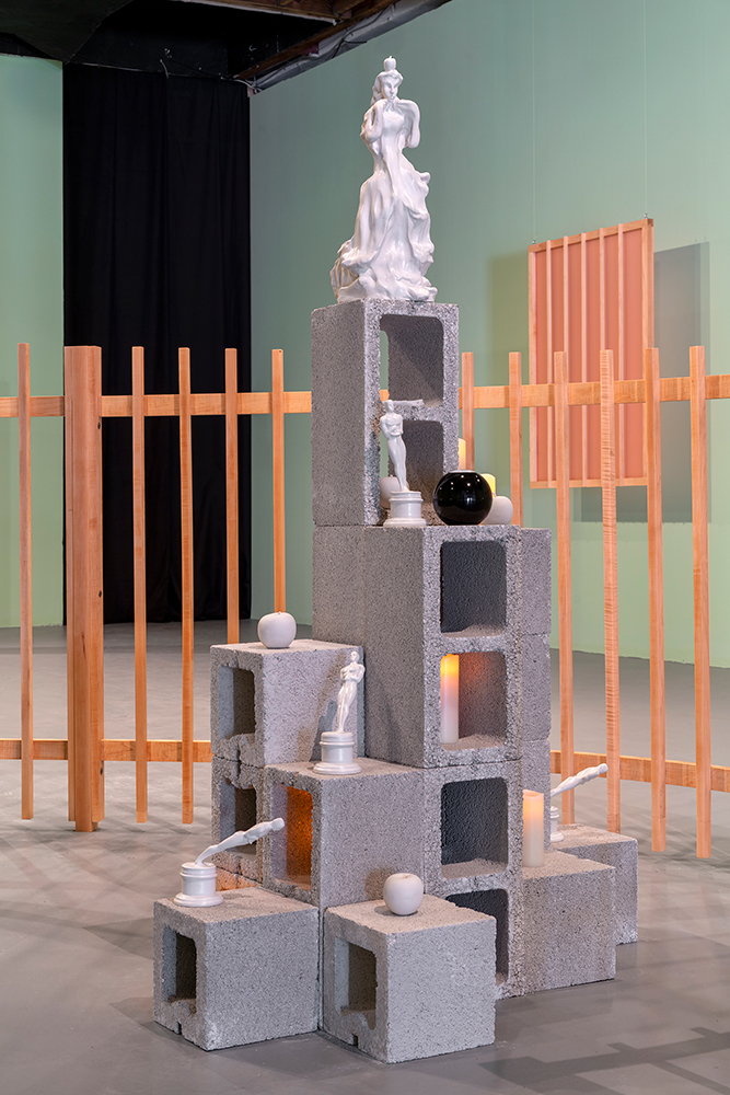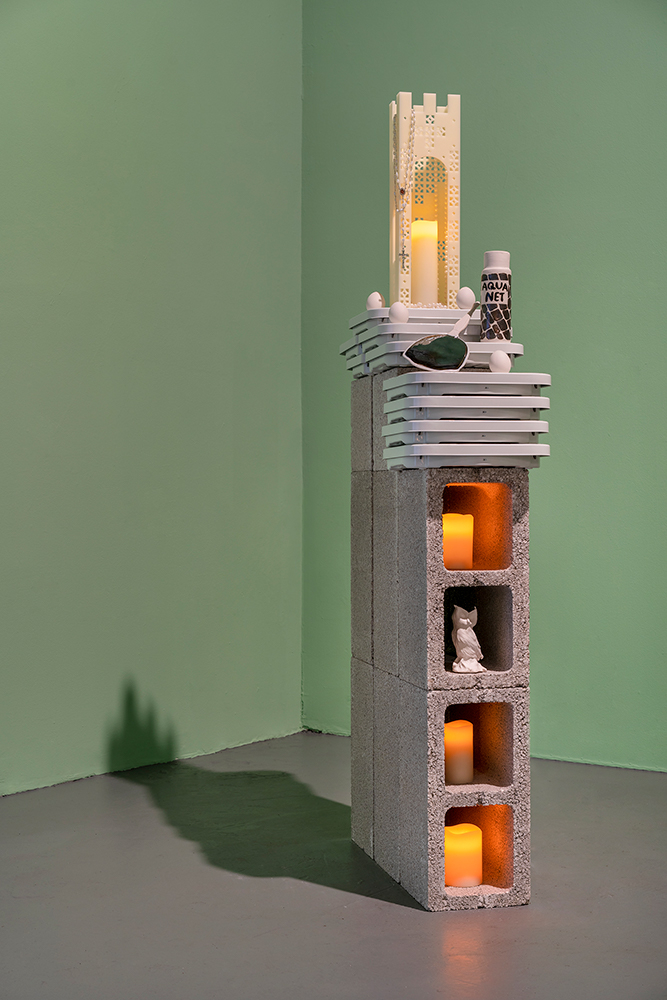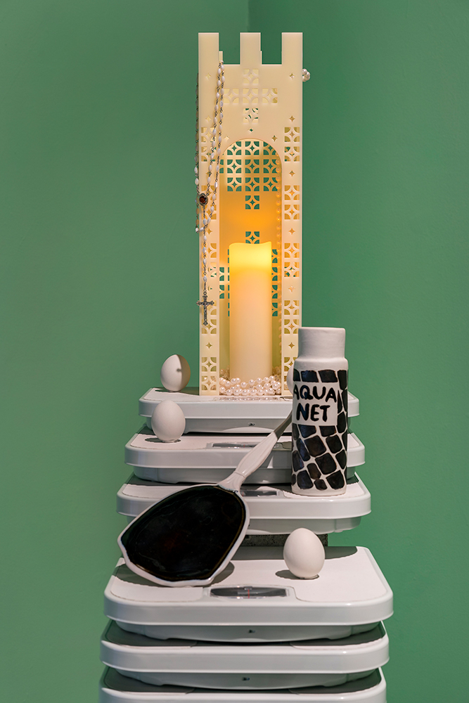 With enigmatic yet familiarly domestic assemblages, the work pulls the viewer into the artist’s memories of her childhood in Miami, where the homes of her grandmother and other Caribbean-American neighbours were populated with Orisha Shrines of the Santeria religion.