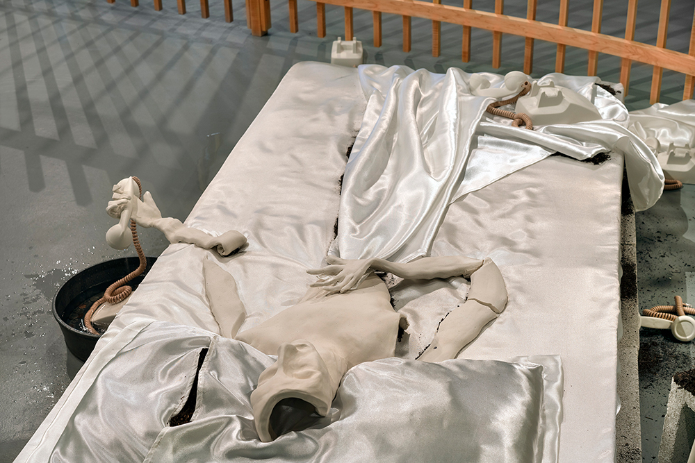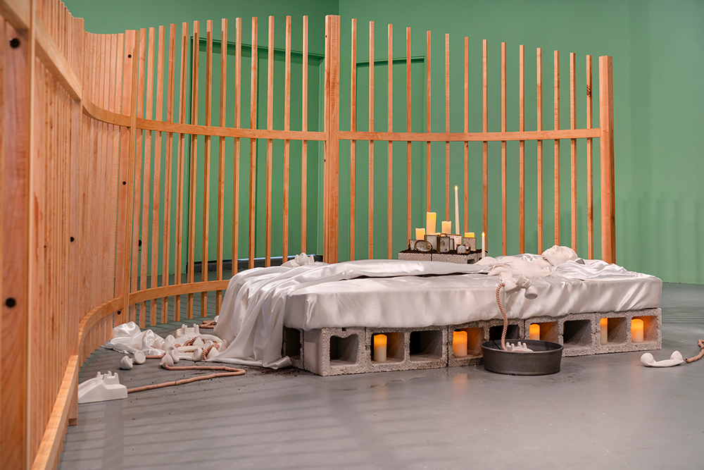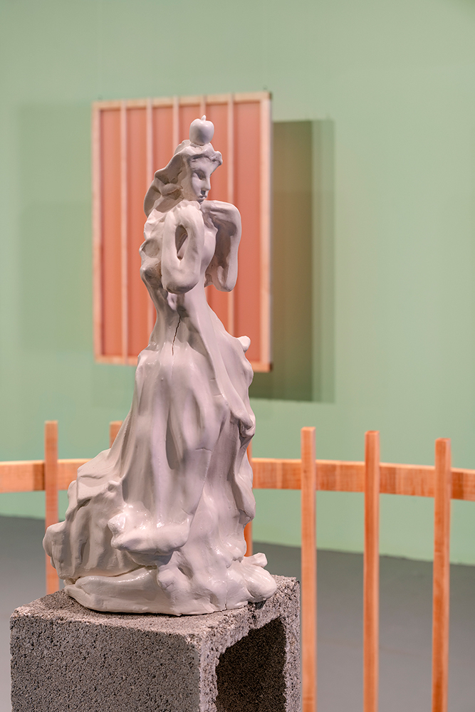 Brache draws on her relationship to the rituals and iconography of Santeria, while the exhibition interweaves home life, colonial histories and rituals together, along with the family stories and female figures of her upbringing. As stated in the press release, the show explores “boundaries of private and public space in relation to womanhood” while centring around the porcelain shrines of the maternal figures in the artist’s life.**