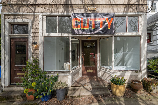 The apocryphal nature of humanity, and the artist’s penchant for obscurantism, is clear before one steps into the gallery: outside, o’neal hangs a 24×71” vinyl banner that reads: “CUTTY”, a Black California English word meaning hidden, shady, out-of-the-way, dankly hermeneutic, and related concepts. The visible banner pairs with an invisible one, which the artist reports is hung at a secret location somewhere in Portland metro. The space, which is one of the city’s few nationally-recognized commercial galleries is at an unassuming house on the outskirts of downtown Portland, off the highway. “CUTTY” here could refer to the space itself, the neighborhood, the city, the work, the show, the practice… Semantic withdrawal becomes a polysemic network: the possibilities go on, and the banner offers the reader the first insight into the kind of experience o’neal wants to tease out.