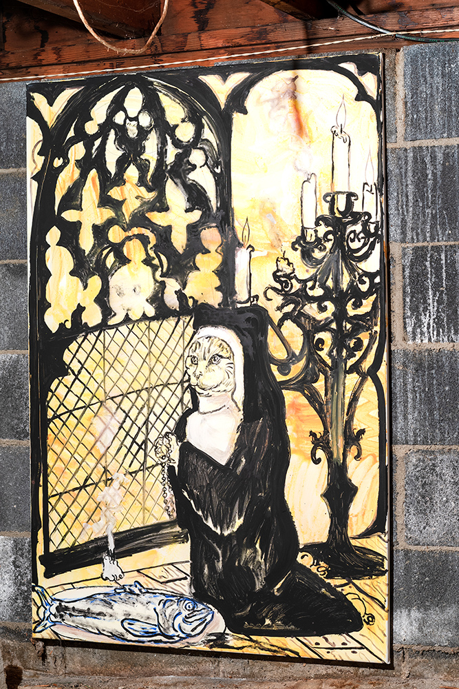 Deirdre Sargent, Nicholas Sullivan and Philip Hinge’s kissed by profane grace group exhibition was on view at darkZone, New Jersey on March 9, 2019.