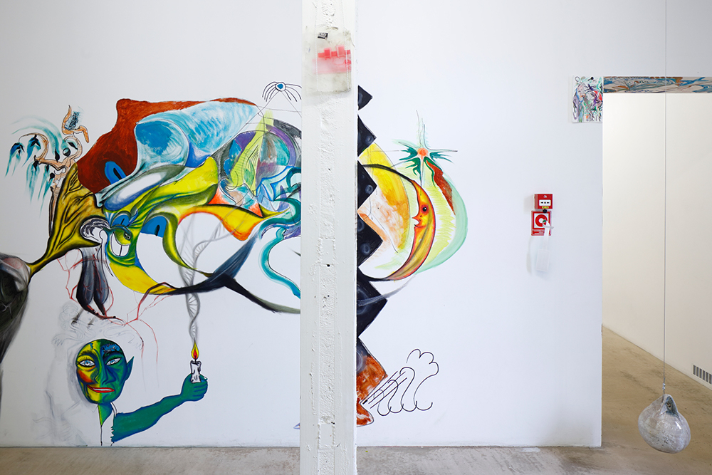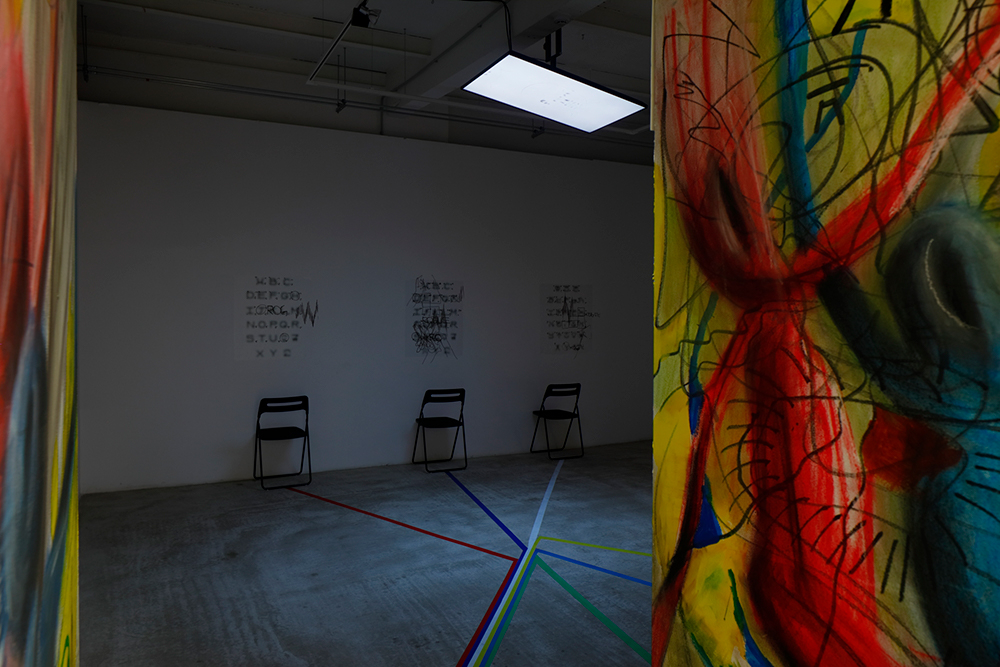 “The exhibited artworks wink at each other, crack, fidget and slide in-between the arches inviting the viewers to leave vowels and consonants behind to open a small or a medium-sized window, a pretty large window, or even a huge window.”**