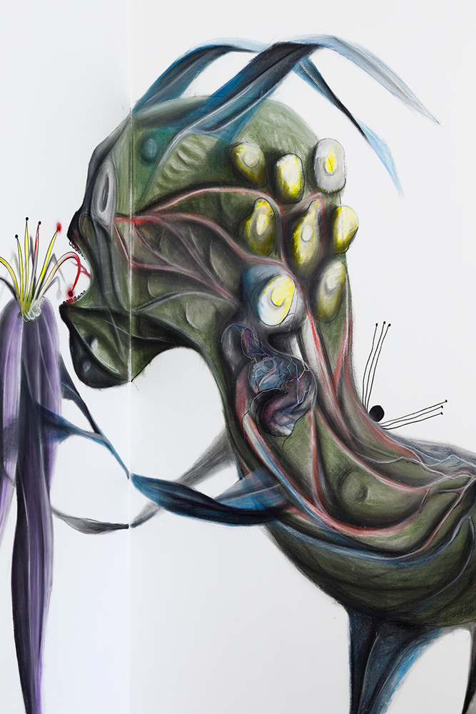 Featuring Bora Akinciturk, Jaakko Pallasvuo, Viktor Timofeev and Evita Vasiļjeva, works sprawl, overlap and enter each other’s frames of view in the show. It draws its title from a comment by late art dealer Colin de Land, who noted there is small window of time for viewing pieces of art before their perception is affected by language. This is a space that de Land felt should be prolonged, and as the exhibition’s press release notes: