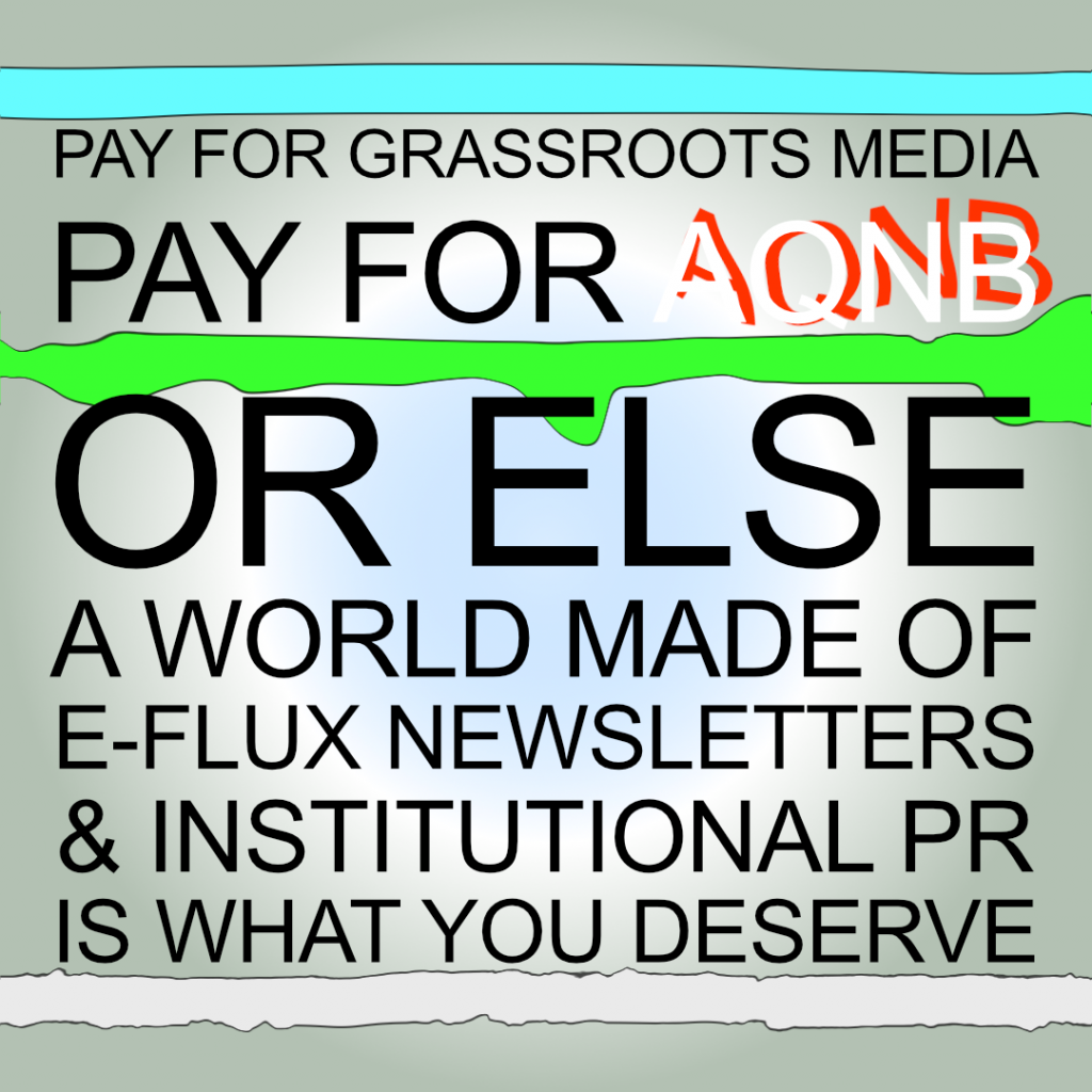 All that said, we do understand that there is a lot going on in the world right now. Our community is financially and emotionally depleted, and there are other far more immediate social and political concerns on which to focus. But it’s for that reason that I believe it’s more important than ever to hold space for alternative and independent perspectives, as so many of the platforms that do and have done that continue to go under. In doing so, I would like AQNB to be enabled to grow and diversify its network, reinstating its contributor budget and reducing its in-house editorial in favour of paid writing from a broader set of voices. Our long-term goal is to run the site more cooperatively, while opening it up to more collaborative projects and paid positions for other people. For now though, we’ve set our first goal at $1,200 to cover maintenance and production costs, and we hope you can help us achieve that.