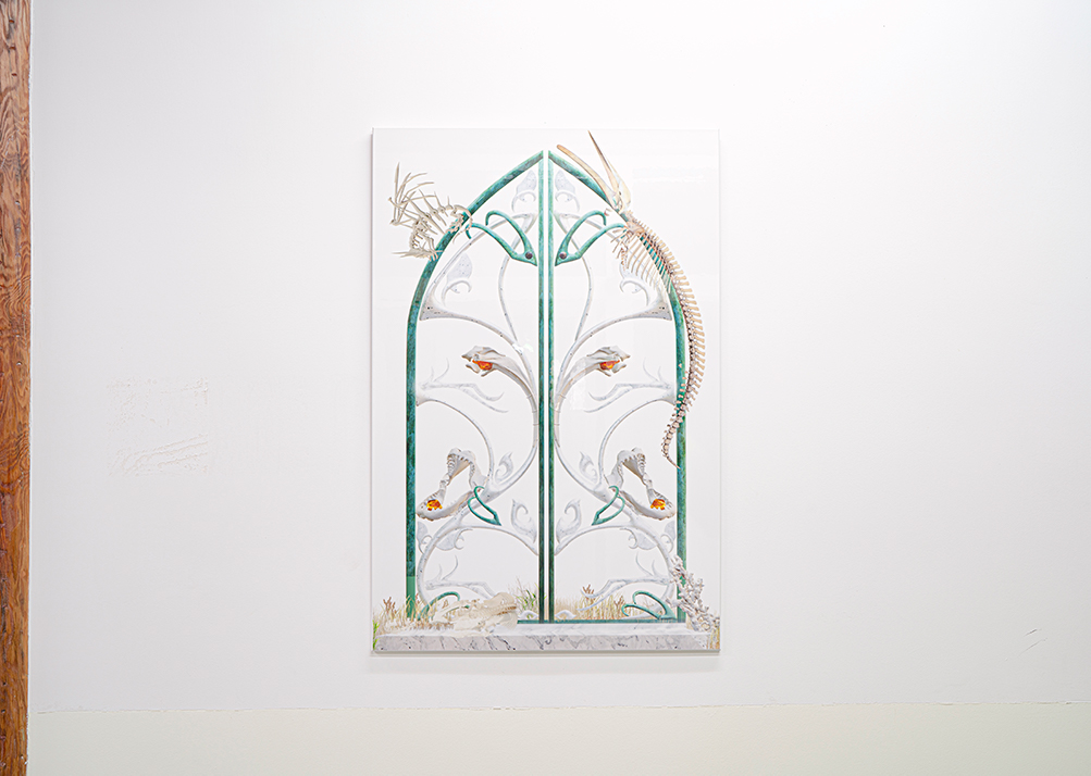 Featuring mixed-media installations from artists including Maggie Menghan Chen, Feng Zhixuan, meltingwang and others, the show draws from both manufactured landscapes and folk mythology. With works made of synthetic materials such as 3D prints, PVC and electric fountains, the exhibition evokes the way in which myth is ingrained in technology and the ecological.**