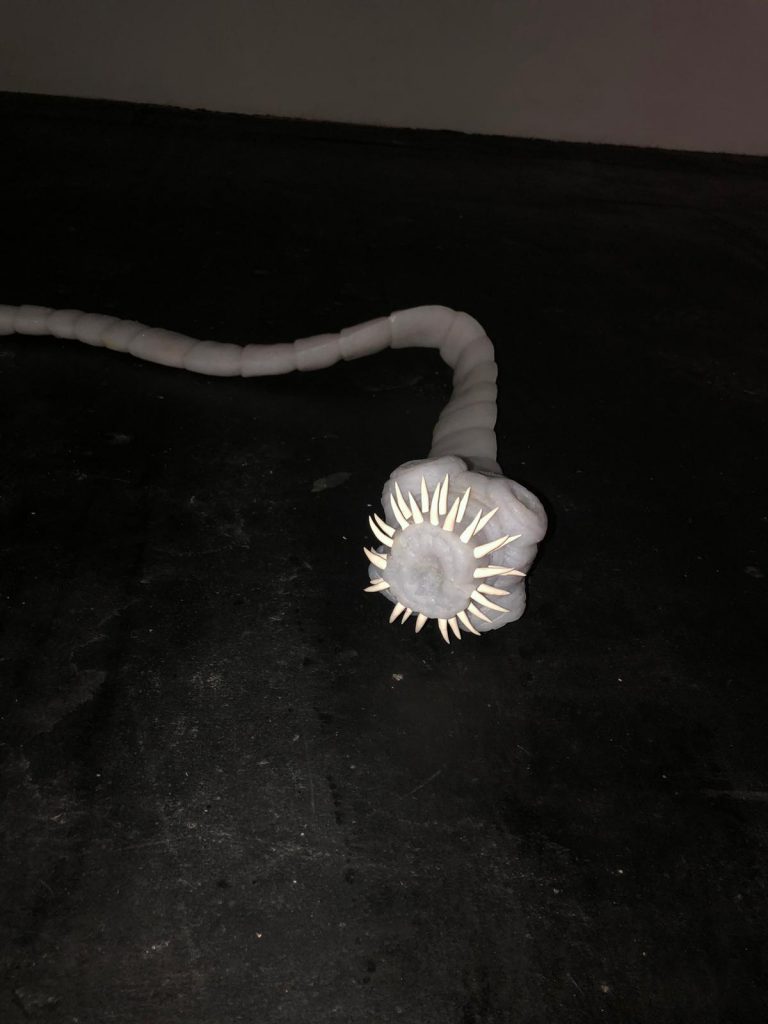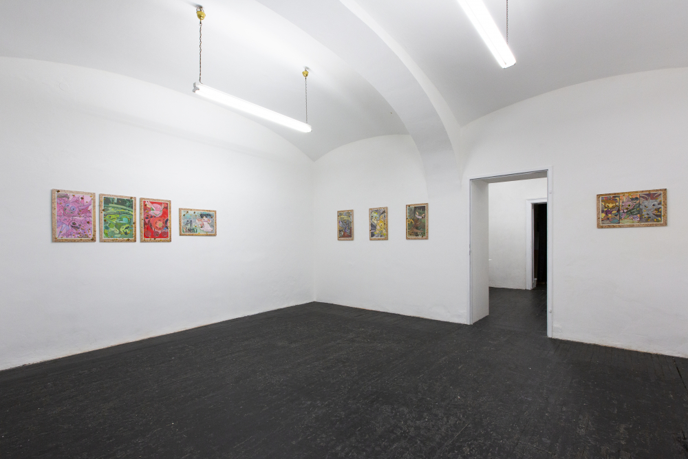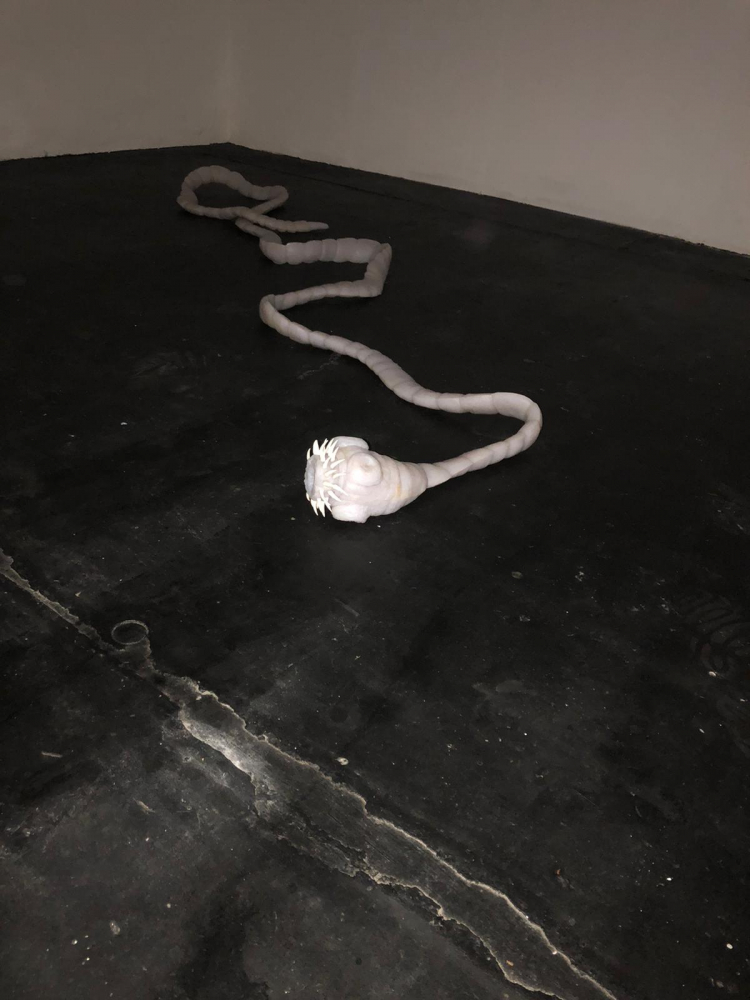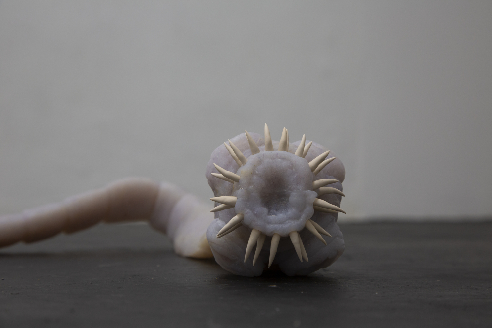 Opened as part of the Austrian capital’s Curated by gallery festival, which closes on September 26, the London-based artist’s show probed the psychological and physical responses to external and internal triggers of various dependencies buried in body memory and trauma. The combined series of new wall works, sculpture, a found object and sound recording are what Kretowicz calls “nauseous, squeamish and horny” in the exhibition’s curatorial essay. It describes Serber’s ambivalent examination of notions of immunity and disgust, communication and connection, as follows: