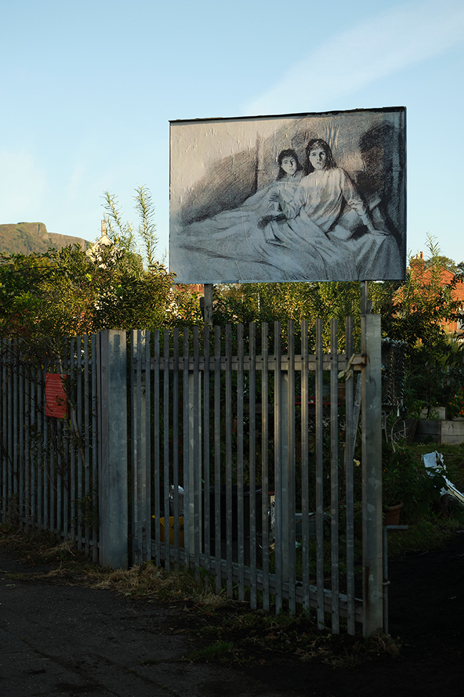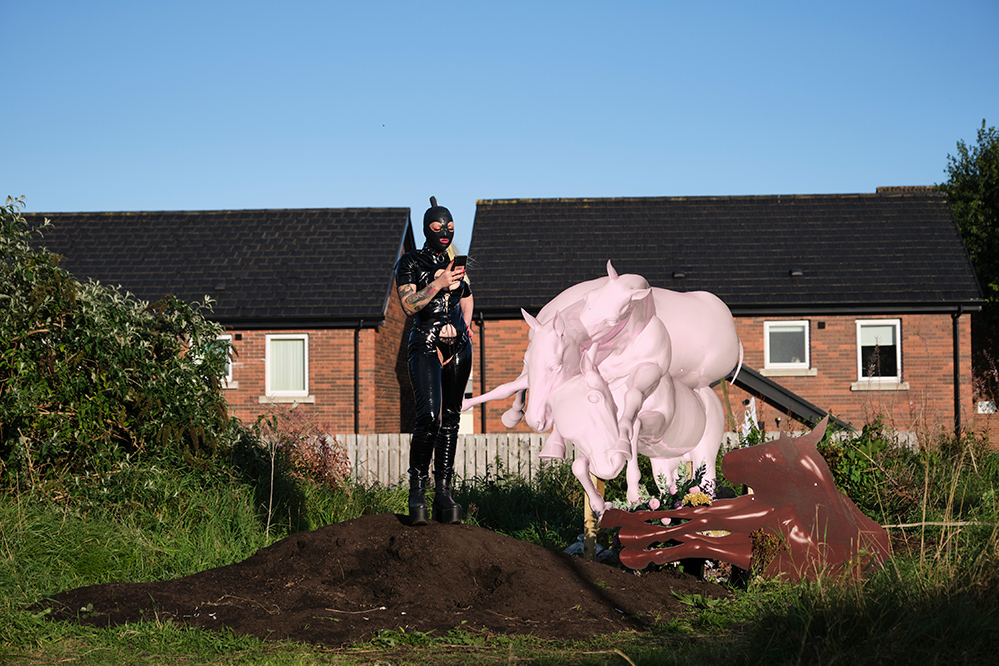 Creamatorium, a solo off-site exhibition by Jennifer Mehigan with Ria Adeyinka and Bassam Al-Sabah, was presented by PS² at Peas Park, Belfast on September 25.