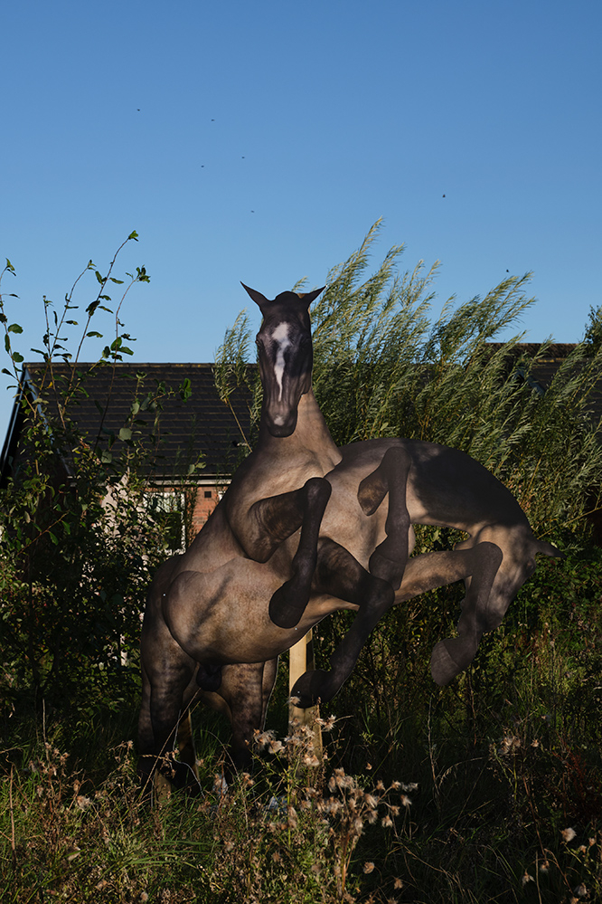 Featuring large-scale cutout prints in a garden setting, as well as a reading in fetish wear by Adeyinka of a text by Mehigan, the show created an arcadian site for queer reflection on life cycles and ruins. This sentiment is expressed through the opening lines to the reading, a transcript of which is available on the artist’s website: