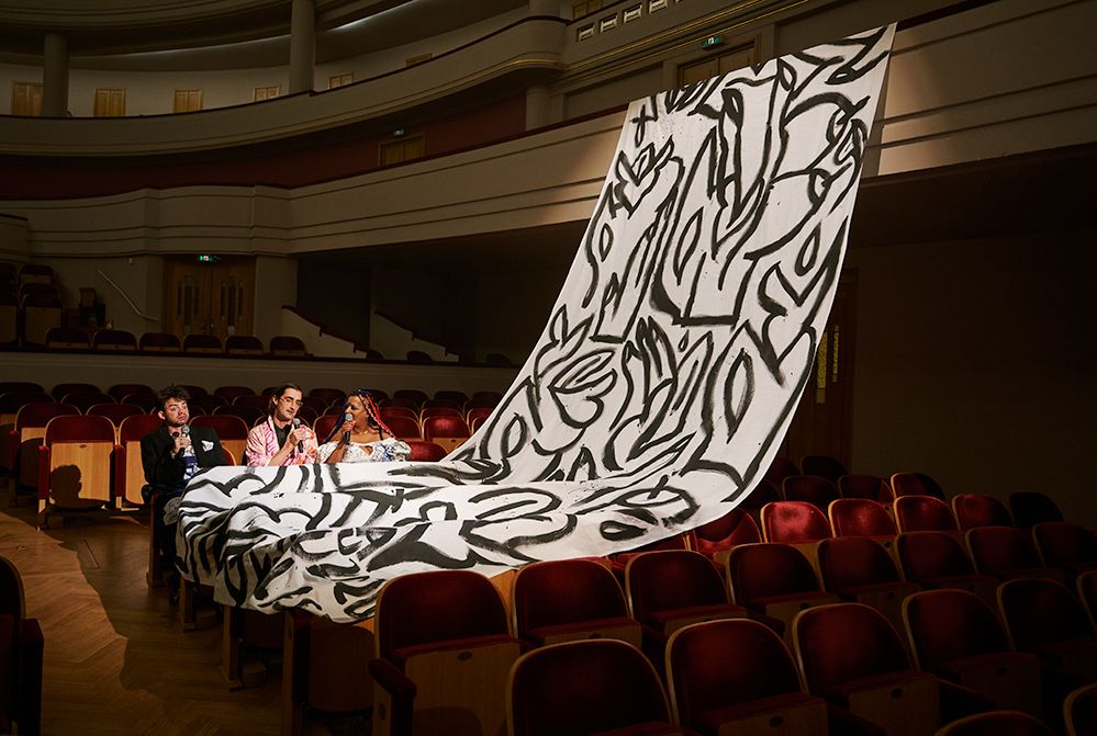 Vava Dudu and Geo Wyeth, curated by Alberto García del Castillo (2020). Performance view. Image courtesy the artists + Centre for Fine Arts (BOZAR), Brussels.