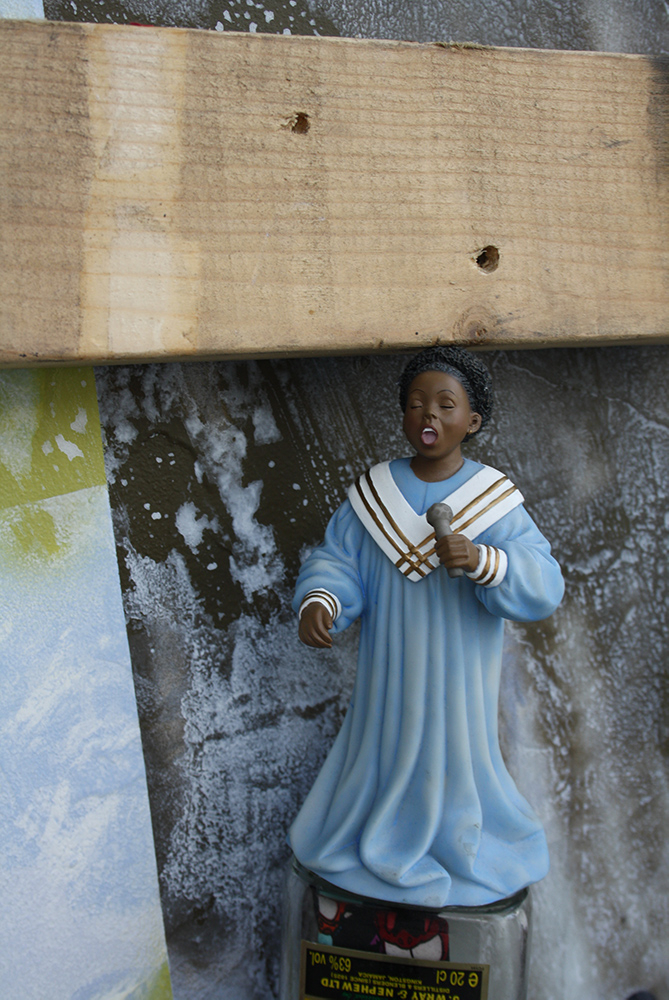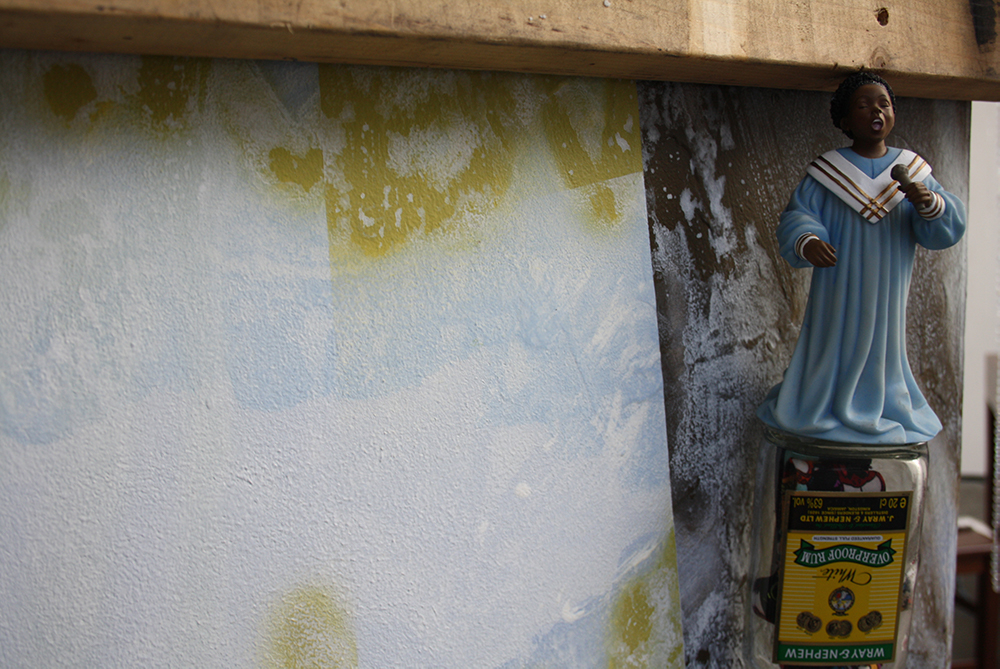 With found materials, sculpture, a reading library of radical Black writers, and a series of public responses including radio programmes with Ashley Holmes, the show is a personal reflection on mourning, grief and community. As noted in the press release: “Audiences are invited to engage with the works, which pay respect to Caribbean mourning rituals: an altar of objects to ponder; perhaps a game of dominos; a library of radical literature from which to learn and question.”**