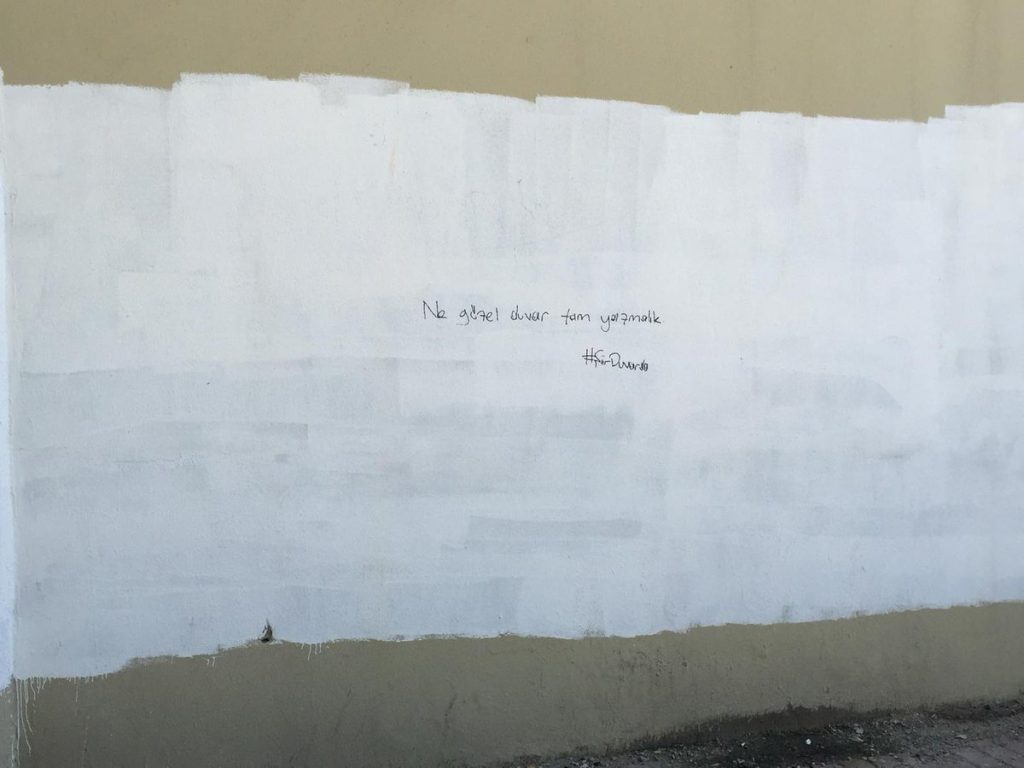 **But this whiteness creates a hole where what you’ve tried to erase or eliminate is ever present. I’m thinking of Turkey’s 2013 Gezi protests, and how afterwards we started seein g this grey paint covering the writings and graffiti all around. When you’re trying to get rid of something so hard, what you replace it with becomes just another placeholder for what’s been erased. It is even more visible.